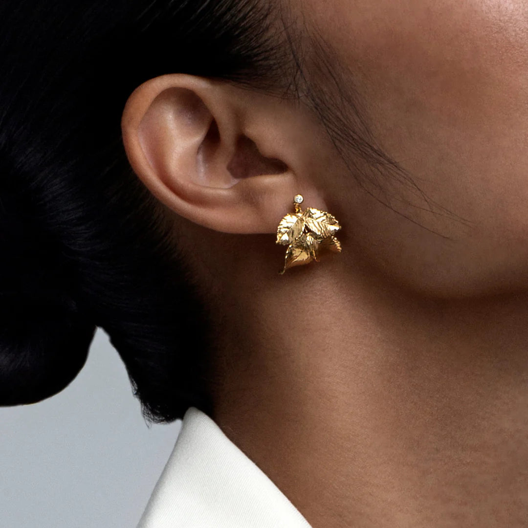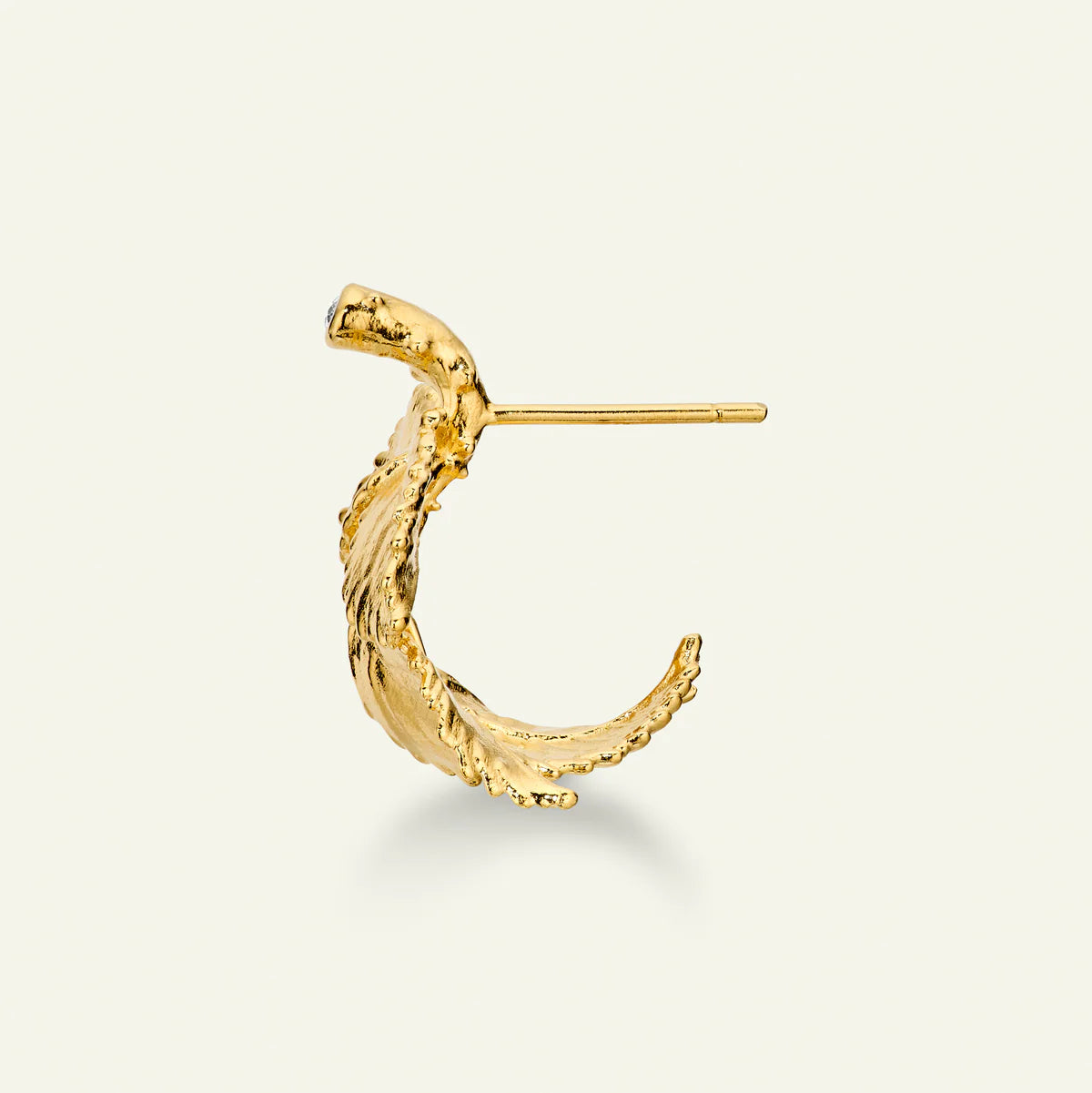 Flora Danica Rosenblad Hoop Øreringe med Diamanter – Forgyldt: