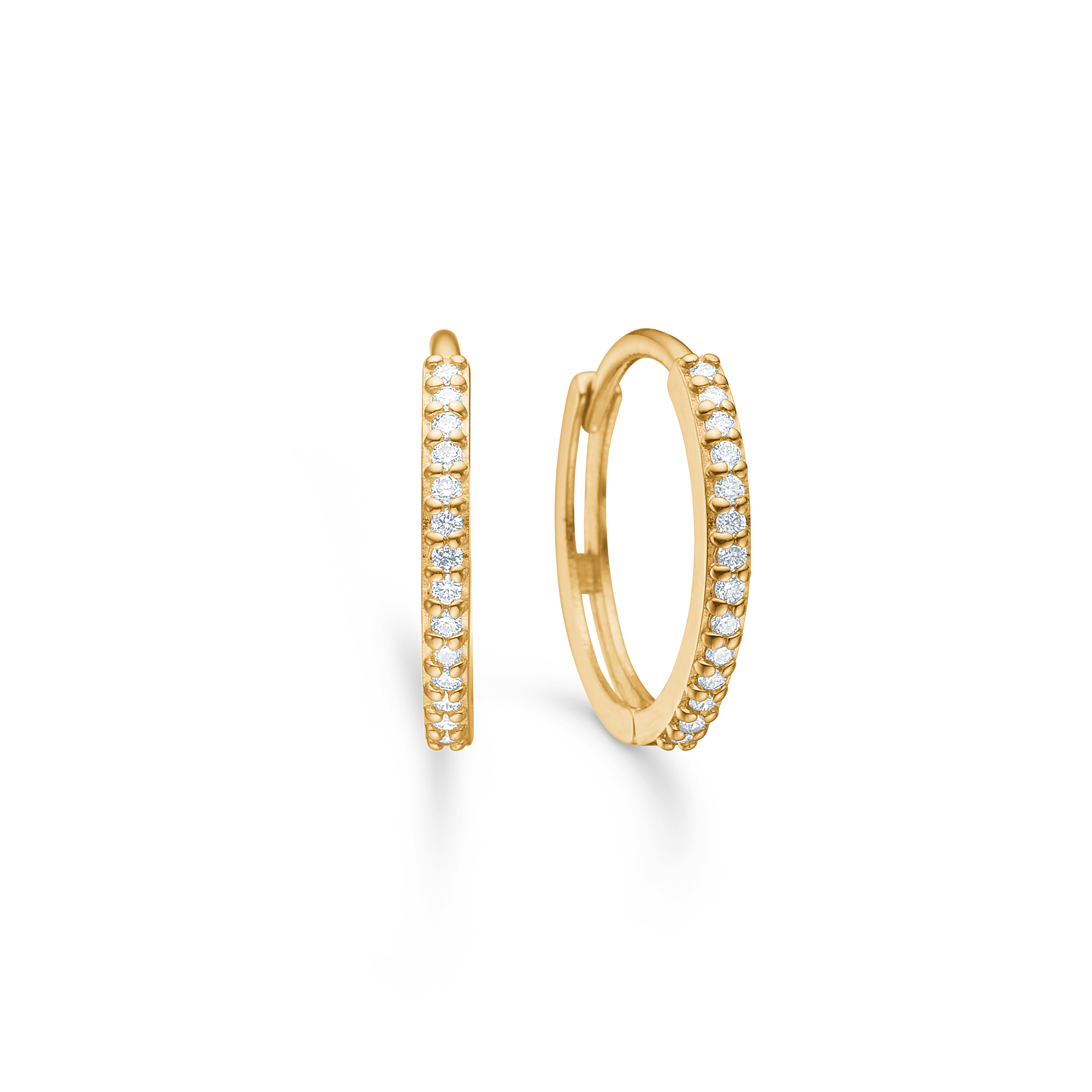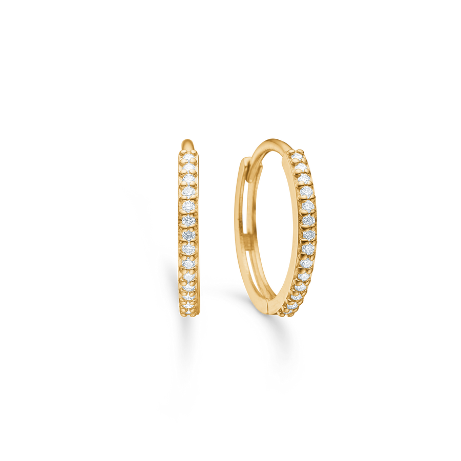 Lumina øreringene er smukke, afrundede creoler i 14 karat guld med i alt 0,14 ct. brillantslebne diamanter i kvalitet W.SI. Den smalle, afrundede profil følger øreflippen tæt og giver et roligt og elegant udtryk. Et klassisk guldsmykke med diamanter, skabt til dig der ønsker ægte luksus i hverdagen.