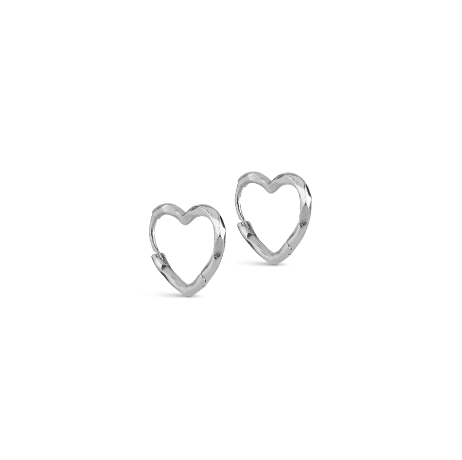 Enamel Organic Heart Small Hoops i Silver