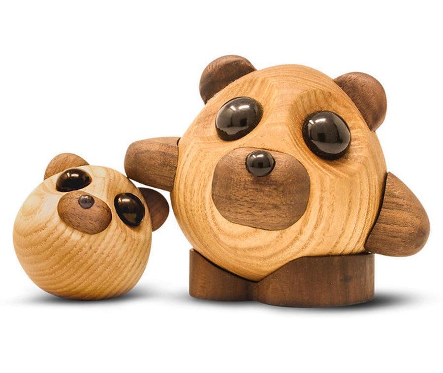 Teddy är gjord av nordamerikansk valnöt och ask, vilket ger vackra kontraster i träets naturliga färger. För varje såld Teddy planteras en planta 3 nya träd, vilket gör figuren till ett mer ansvarsfullt val. Figuren är FSC®-certifierad och CE-godkänd från 3 år.
