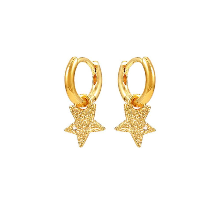 Astra hoops från Hultquist är handgjorda örhängen i 18 karats guldpläterat sterling silver som kombinerar en klassisk bågstil med en modern stjärndesign. Örhängena har en bågediameter på 1,1 cm och en elegant stjärnjuvel med en zirkonia som hänger från varje båge. Den råa looken och de fina detaljerna ger ett unikt och tidlöst uttryck, perfekt för både vardag och fest.