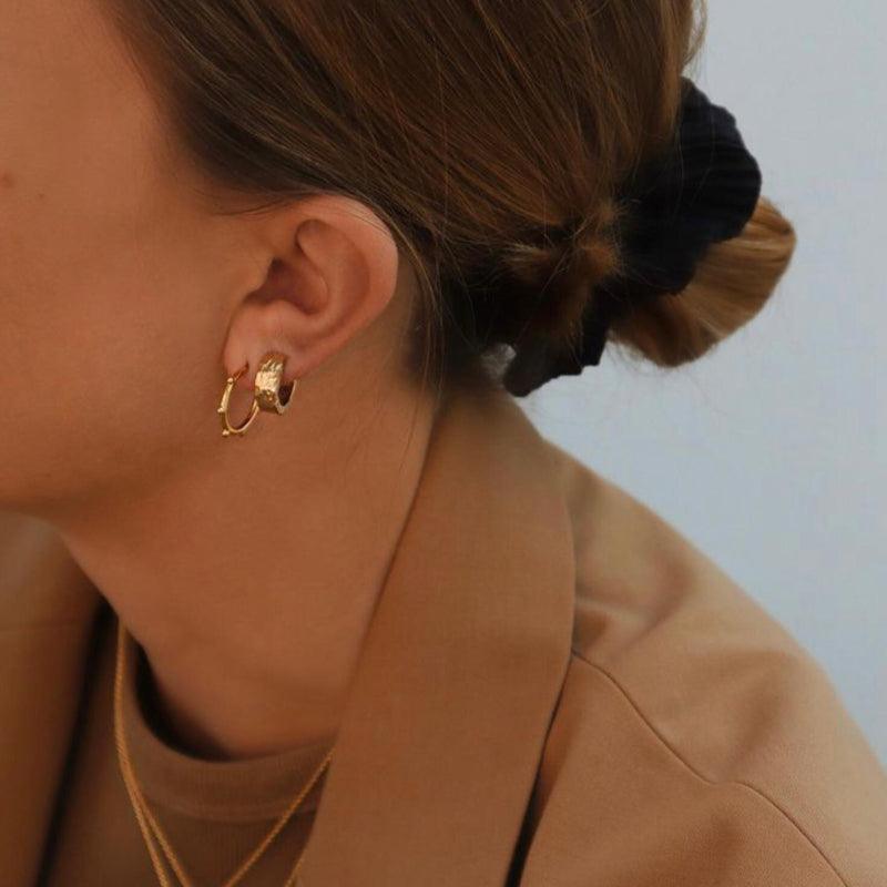 Läckra chunky creole från Jeberg jewellery. Örhängena är i guldpläterat silver med en vacker rustik yta. Mixa dem med dina andra örhängen för en unik och personlig look.