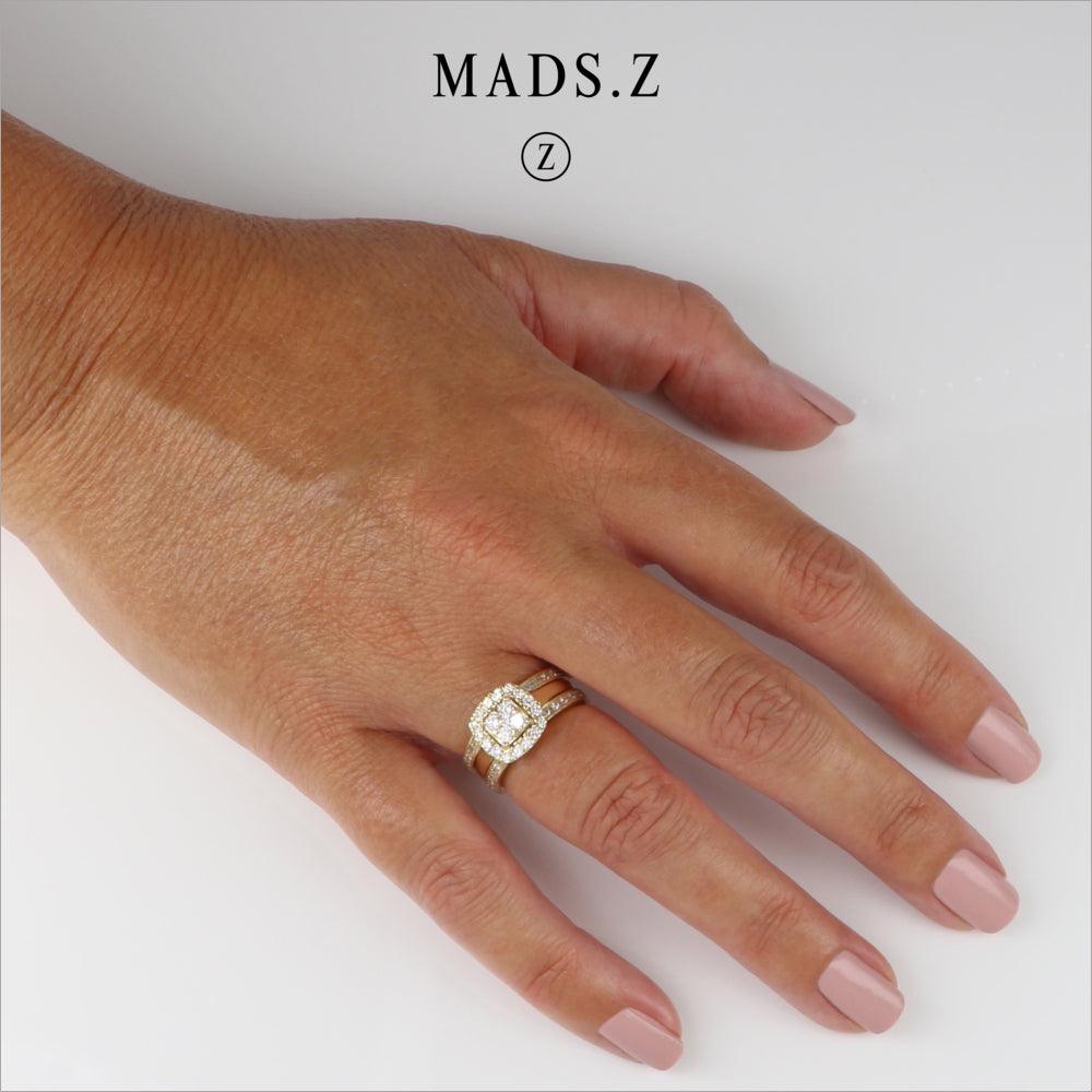 Margaret -ringen från Mads Z Gold Label Collection är inte bara en firande av lyx och skönhet, utan också ett uppenbart val som en förlovningsring. Denna förtrollande ring, tillverkad i 14 karatguld, är inramad med fyra imponerande mittsten omgiven av lysande diamanter, som tillsammans utgör 0,45 ct. W.SI Brilliers.