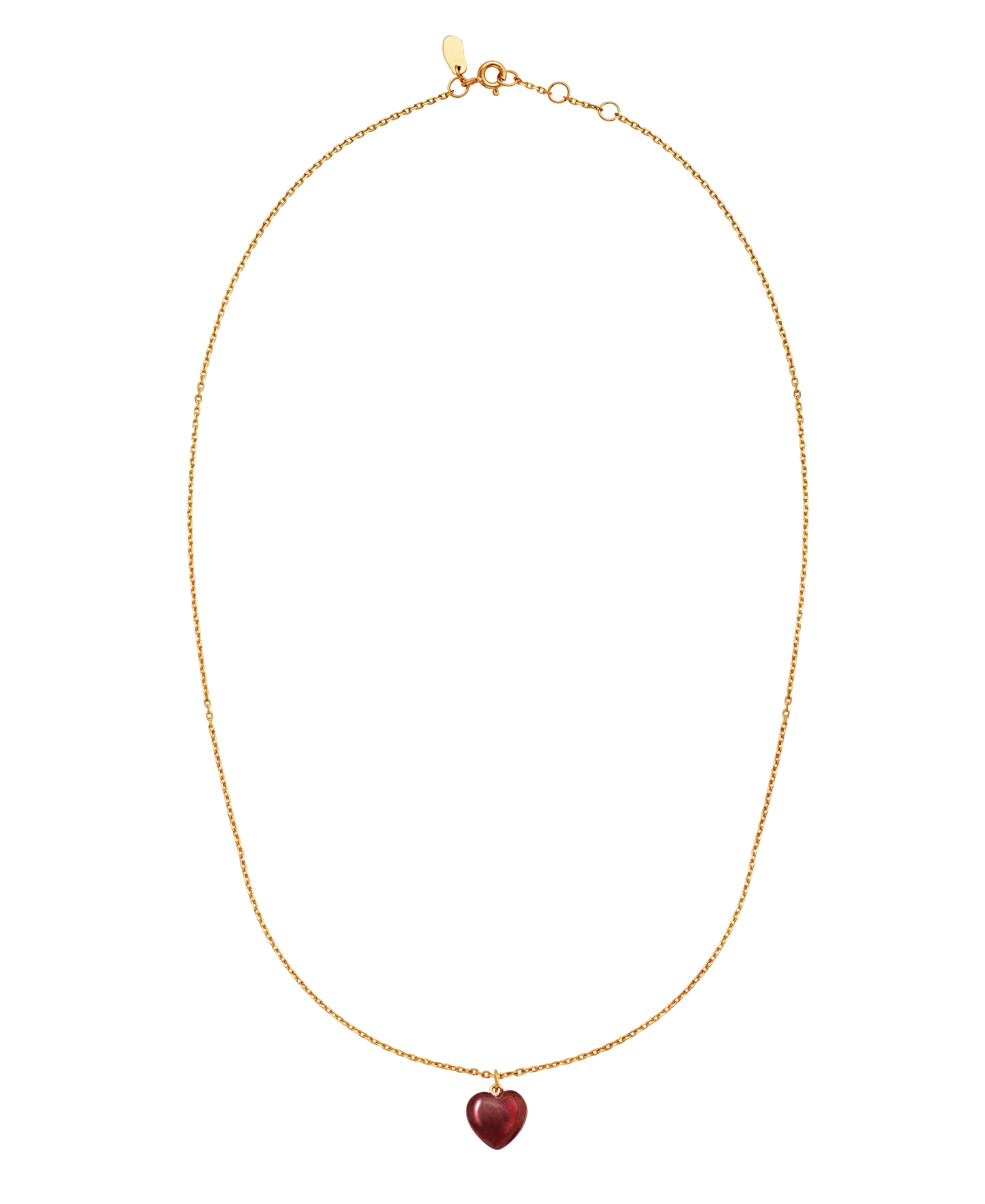 Den varme røde jade tilfører smykket dybde og symbolik, mens det forgyldte sterlingsølv giver et elegant og tidløst udtryk. Esma Heart Halskæden er en del af Maanestens Valentins serie og er det oplagte valg som valentinsgave til hende, men også perfekt som en personlig gave eller et smykke, du bærer for dig selv – bare fordi.