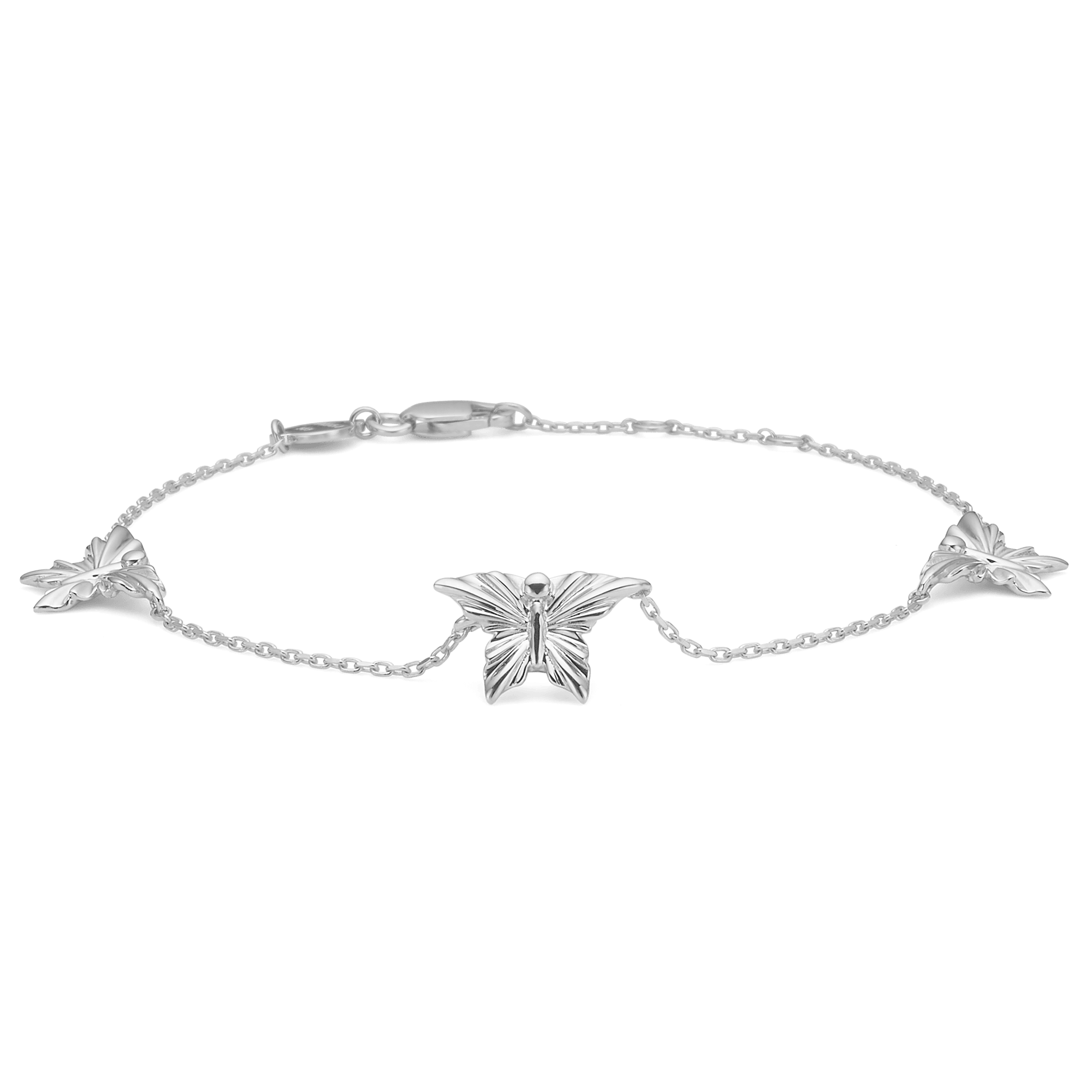 MONARCH-armbandet från Mads Z Silver Label-kollektionen är gjord av 925 sterling silver och prydd med tre fjärilar. Längden på armbandet kan justeras från 16-18 cm, vilket gör det enkelt att anpassa till din handledsstorlek. Fjärilens symbolik av transformation och frihet är central i designen och är en vacker påminnelse om att varje kvinna bär på en inre styrka och skönhet som gör henne till härskaren över sitt eget liv.