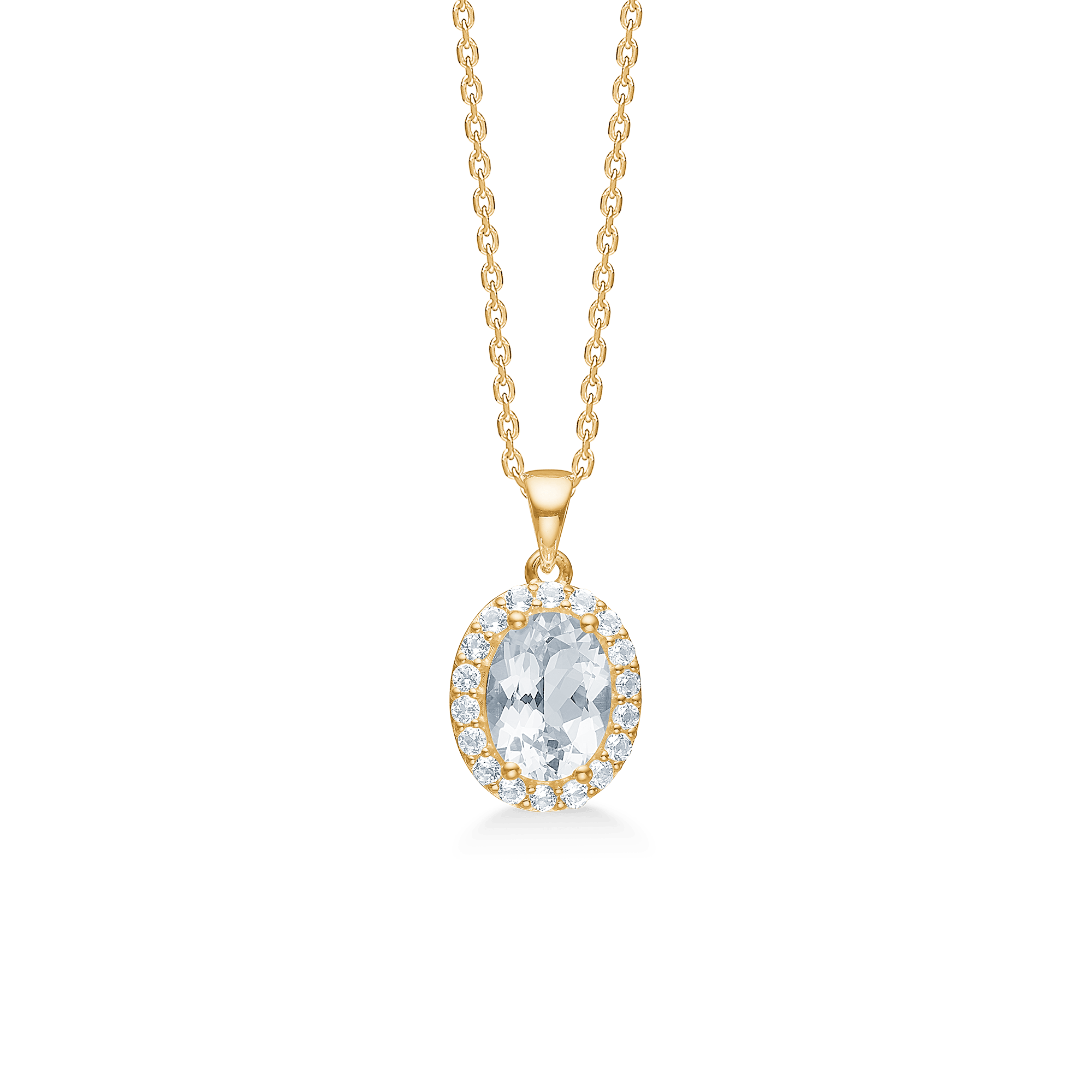 - Sten: Vit topas, omgiven av vita zirkoner
