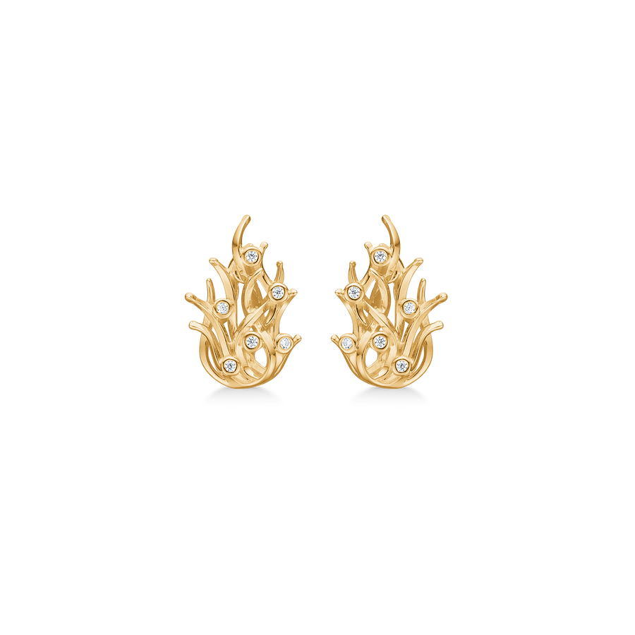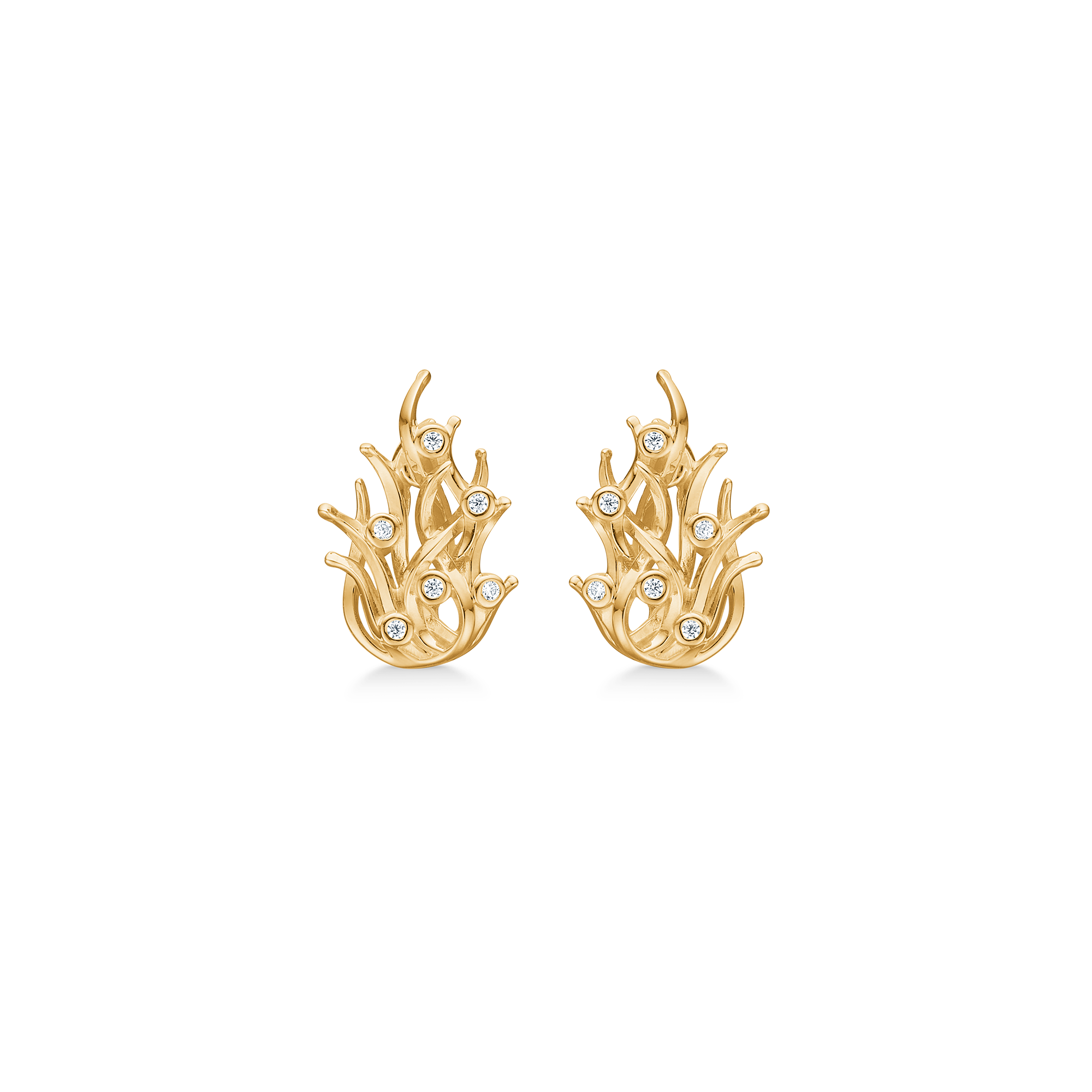 Mads Z Reef örhängen i 8 karat guld är inspirerade av havets organiska former. Den detaljerade designen påminner om fina korallgrenar, där små gnistrande zirkoner är elegant inramade och skapar liv och lätthet i smyckena.