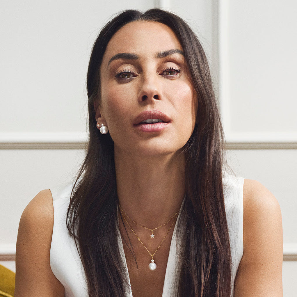 Mads Z Céleste-hänget är en poetisk symbol för harmoni och himmelsk skönhet. Tillverkad i 14 karats guld och prydd med sex briljantslipade diamanter (0,07 ct. Wesselton SI) och en rund, vit odlad pärla, det varma guldet och den mjuka glöden från pärlan kombineras i ett lugnt, balanserat uttryck. De stjärnformade diamanterna bildar en tydlig brännpunkt ovanför pärlan och fångar ljuset med subtil precision.