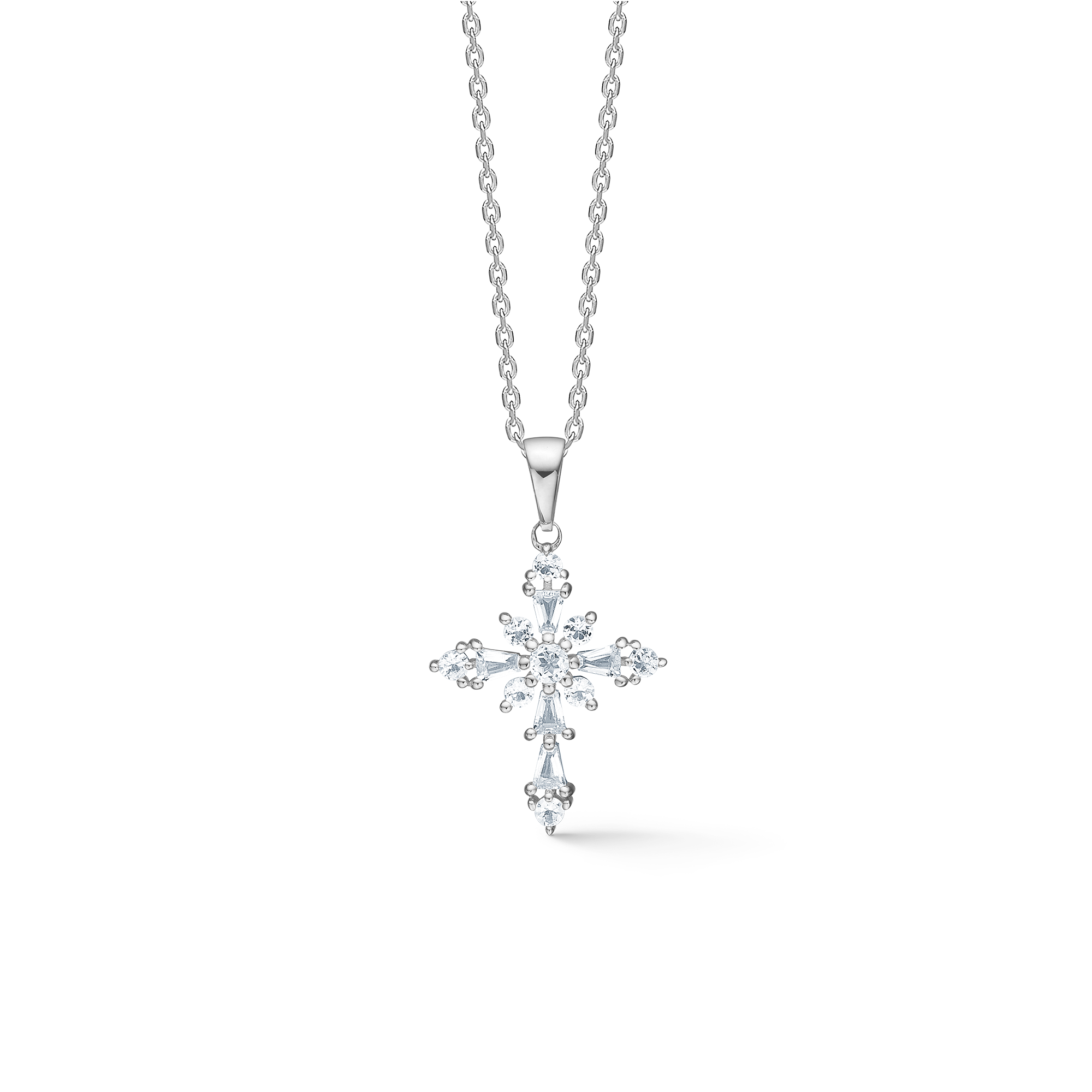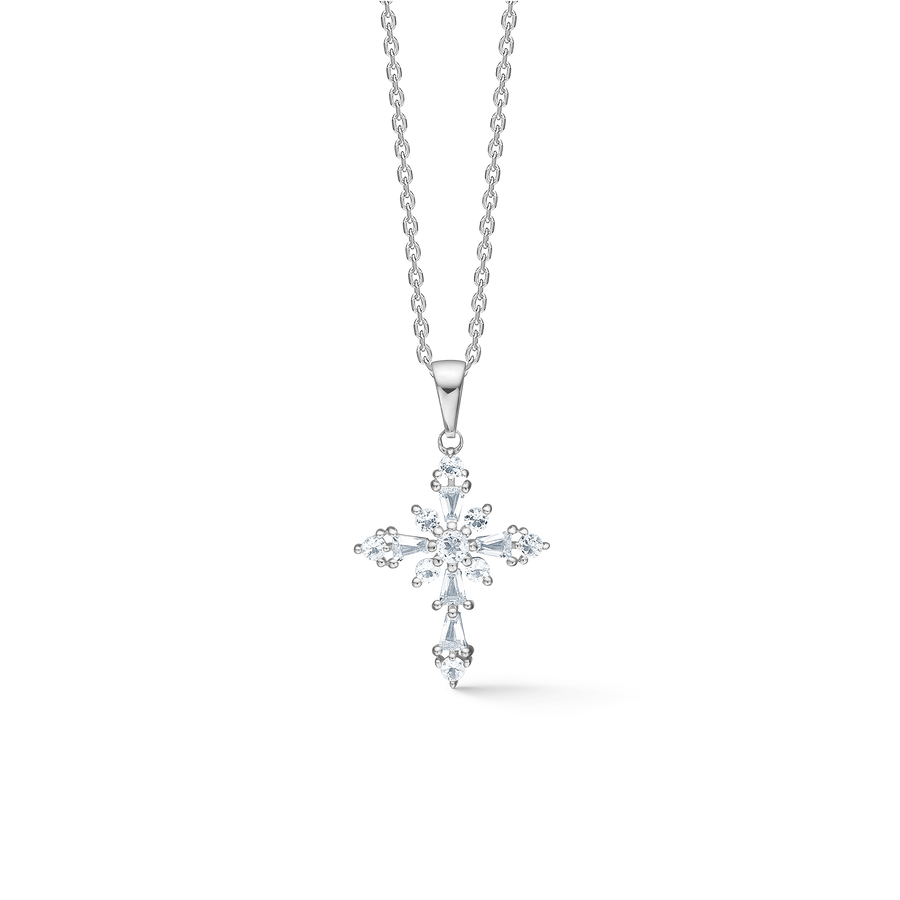 Låt natthimlens magi omfamna din look med Celestial by Medina-halsbandet. Pjäsen är tillverkad i sterling silver och prydd med facetterade vita topaser som fångar ljuset med en subtil, gnistrande glöd. Det grafiskt inspirerade hänget speglar stjärnornas tydliga former och skapar ett elegant, modernt uttryck.