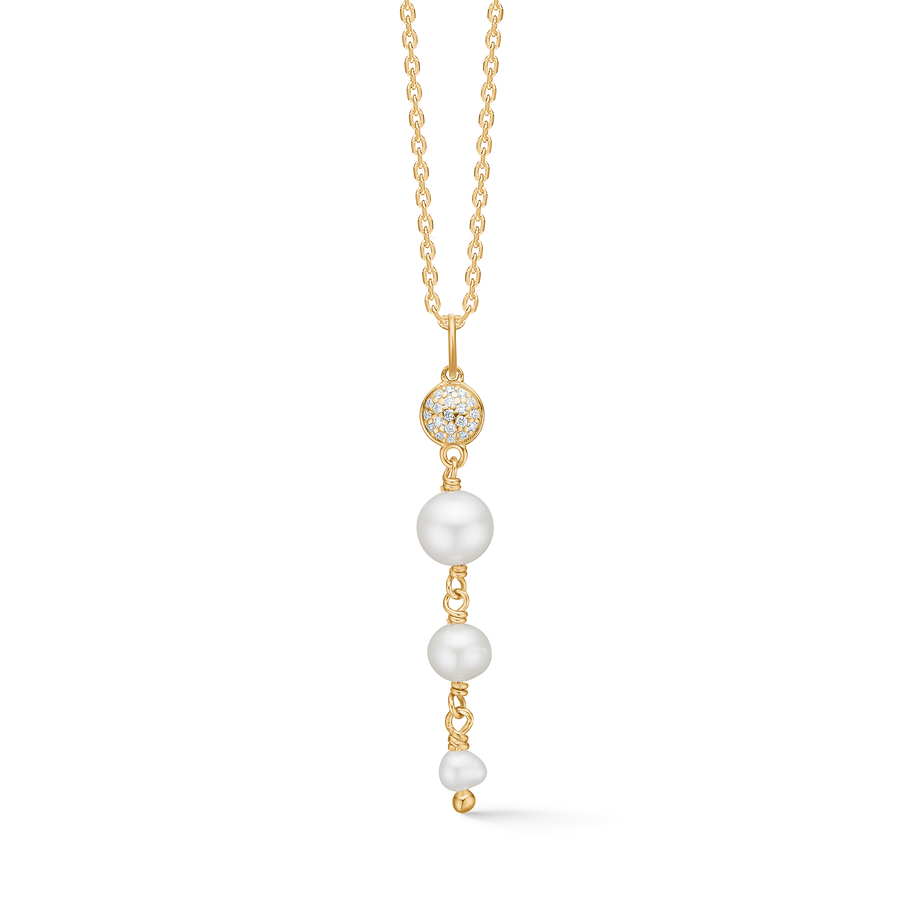 Mads Z Dome hängsmycke i 14 karat guld med vita odlade pärlor och 0,07 ct. brilliants W.SI – utan kedja: