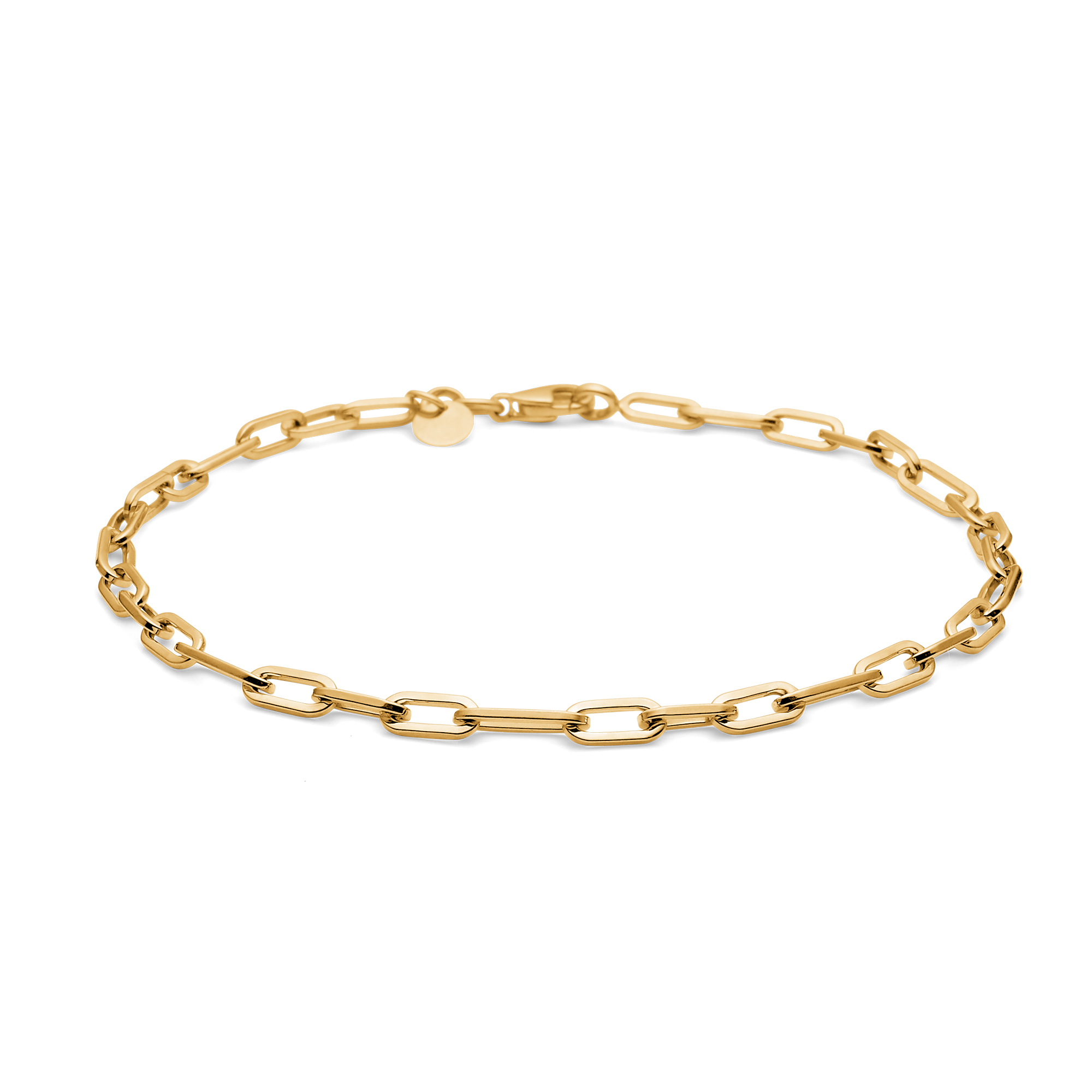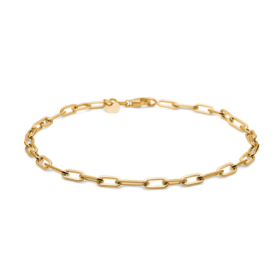 Skapa ett starkt och elegant uttryck med kedjearmbandet Gaia från Mads Z. Smycket är tillverkat i massivt 8 karats guld och har öppna länkar som ger armbandet en modern, luftig och skulptural look.