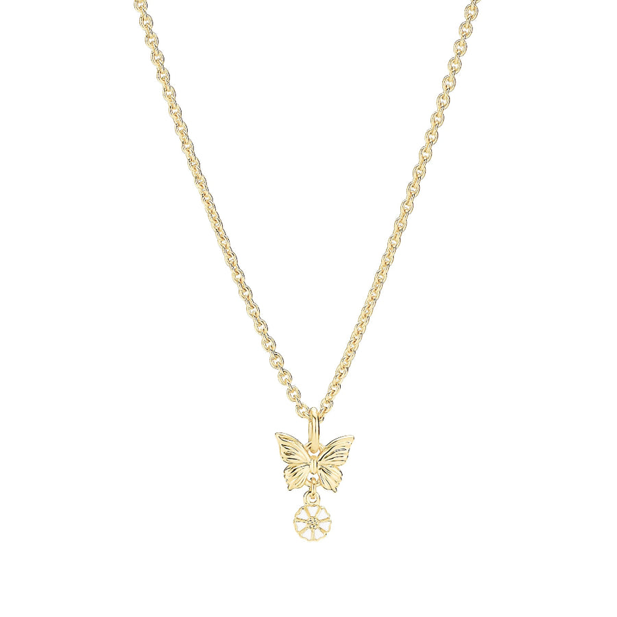 Lund Copenhagen Daisy halsband med fjäril – 5 mm, 24 karat guldpläterat silver med vit emalj: