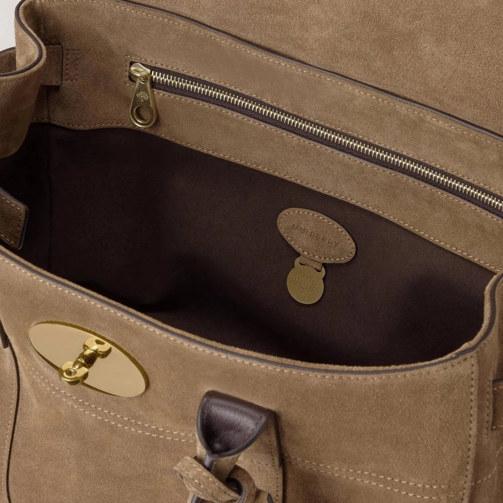 Väskan är gjord av Salcombe Sand mocka vilket ger en mjuk och elegant look. Den exklusiva mockan är behandlad för ökad hållbarhet och funktionalitet, så väskan är lättare att underhålla i vardagen. De mässingsfärgade detaljerna och det klassiska övre handtaget kompletterar den ikoniska designen Mulberry- titta.