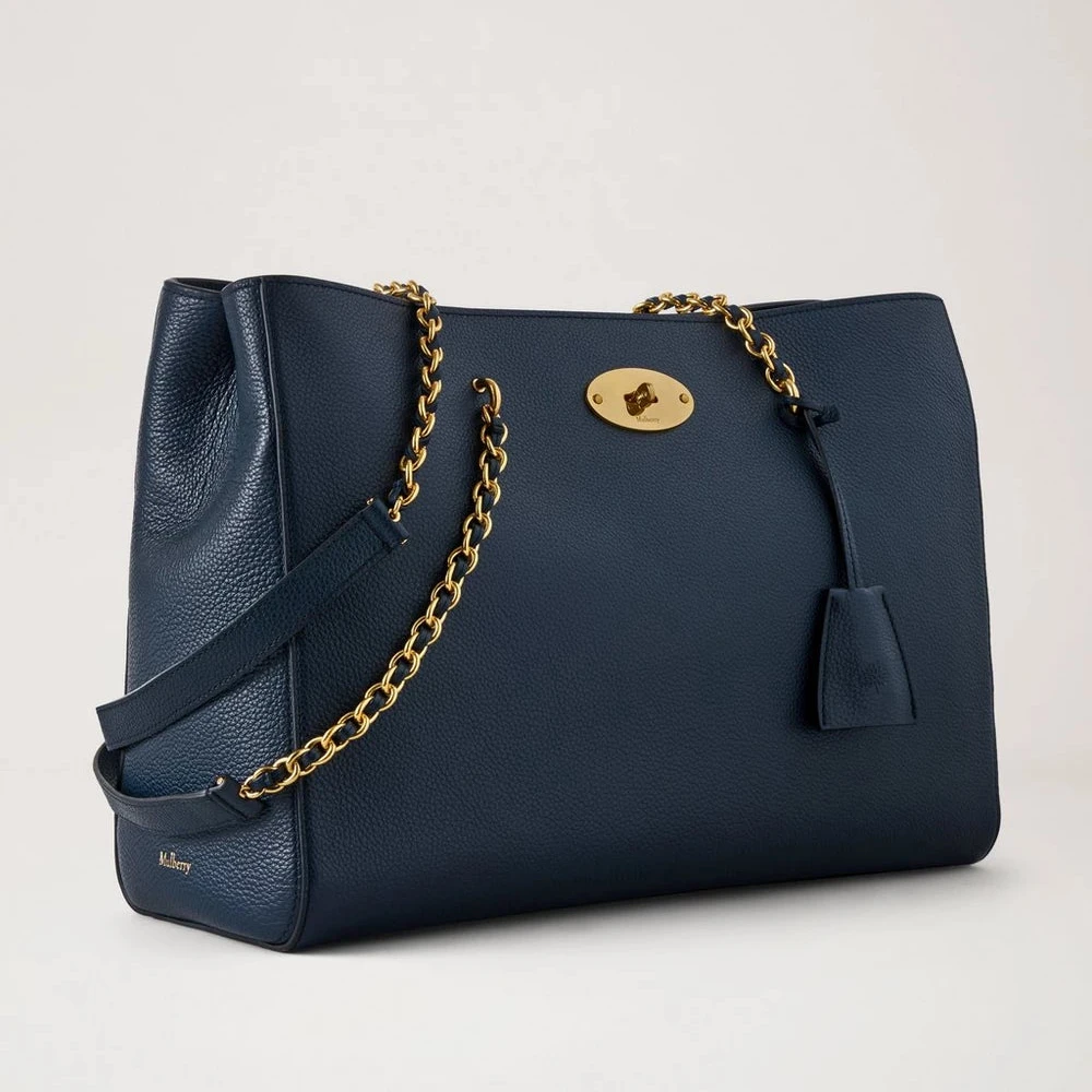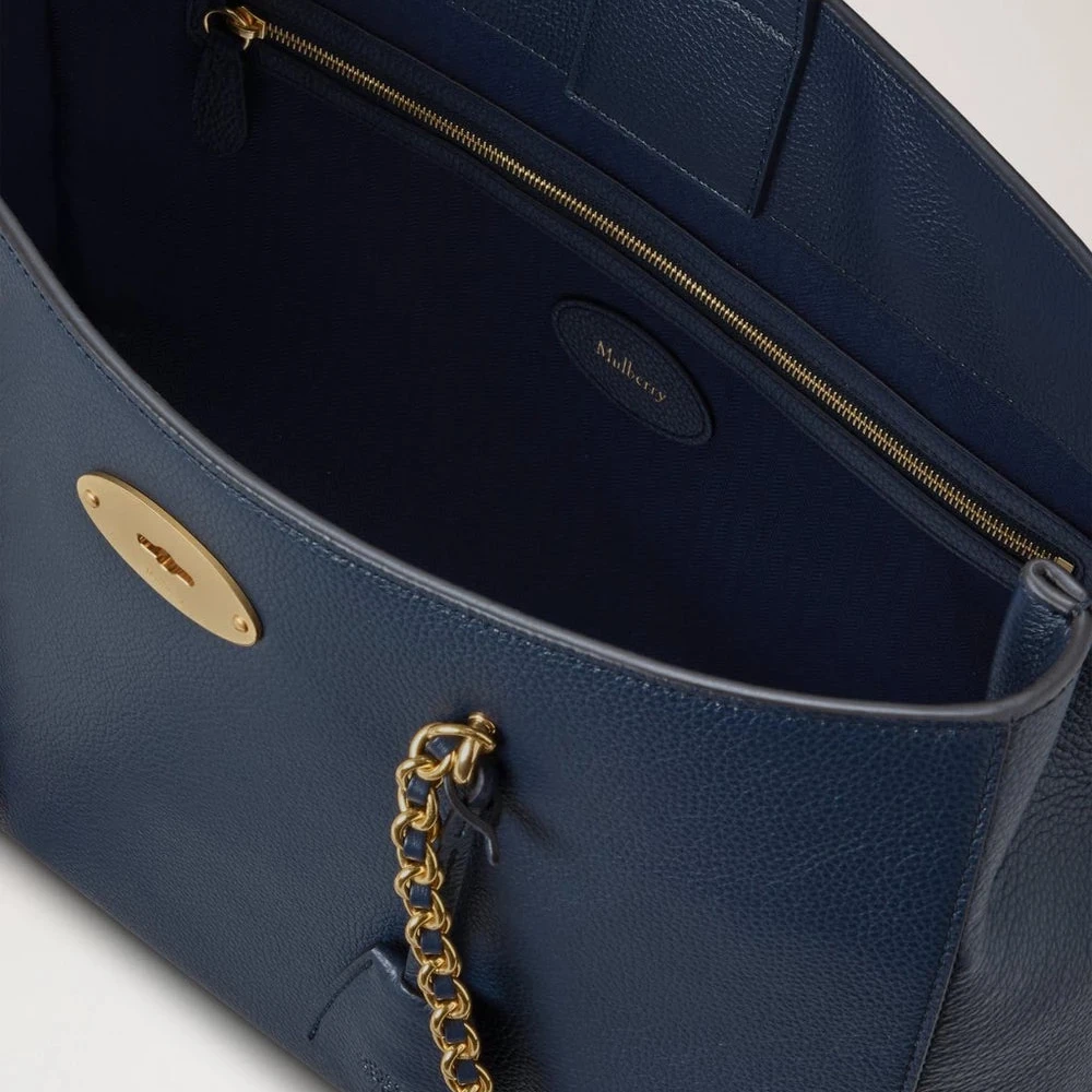 Mulberry Lily Chain Tote – Night Sky Small Classic Grain / Mörkblå Läderväska: