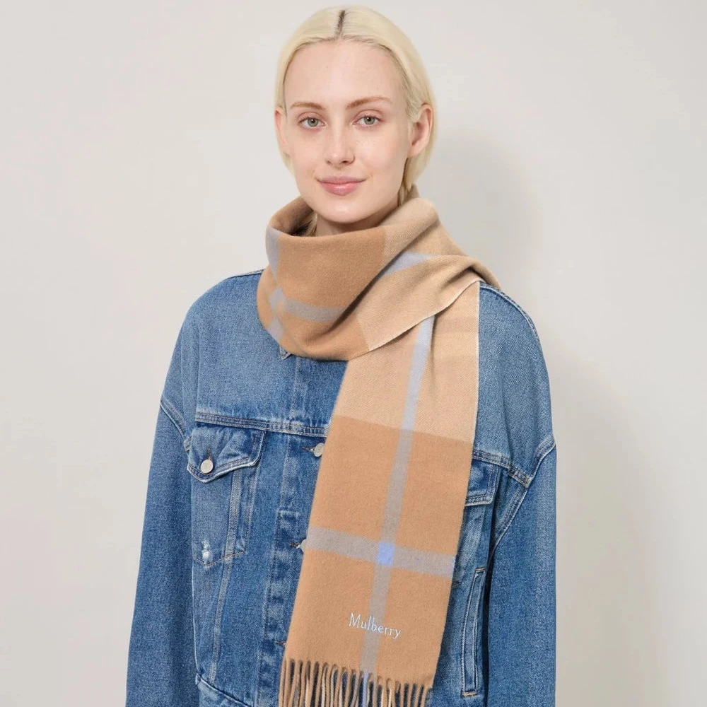 Mulberry Liten rutig Merinoullscarf Camel & Poplin Blue