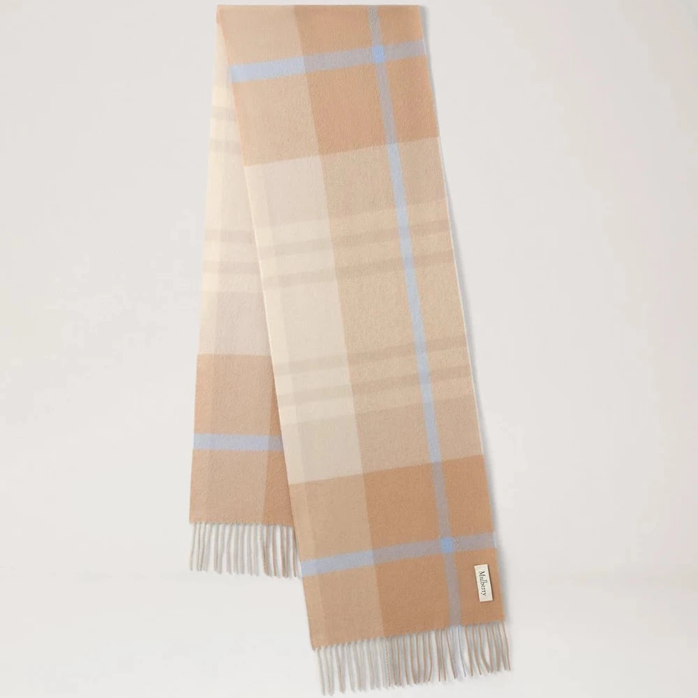 Mulberry Liten rutig merinoullscarf – Camel & Poplin Blue / Klassisk rutig ullscarf: