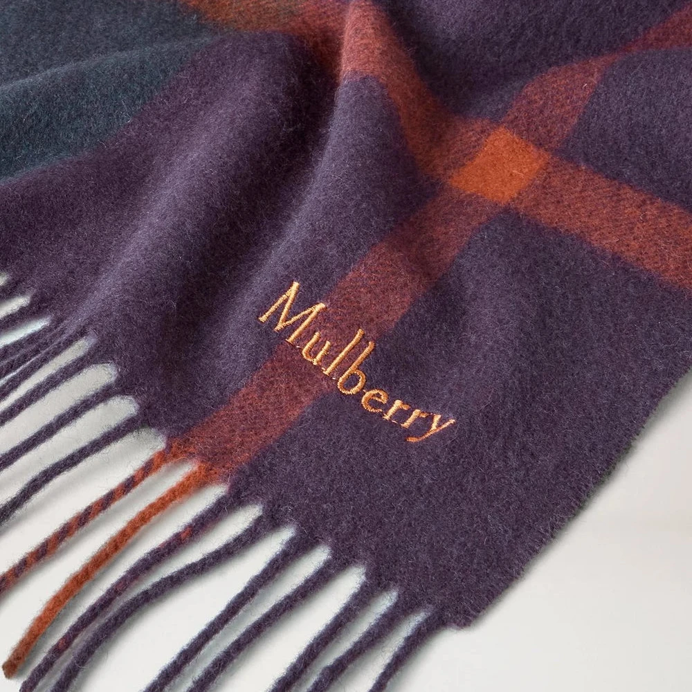 - Detaljer: Klassisk rutig design, broderad Mulberry-signatur, avslutad med fransar
