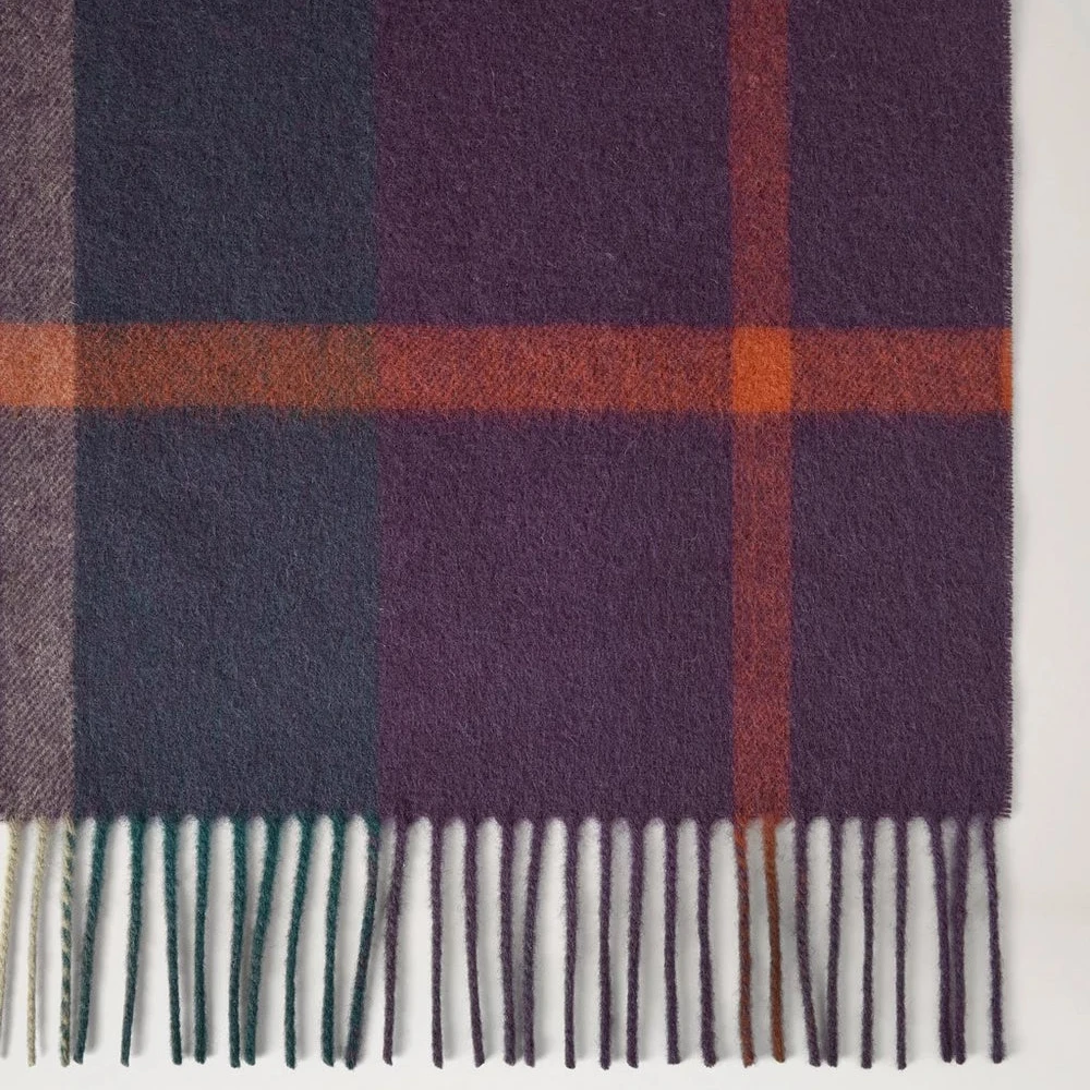 Det tidlösa rutmönstret och de fina fransarna i ändarna ger en stilren och sofistikerad look, medan den broderade Mulberry-logotypen ger en exklusiv finish. En måste-accessoar som passar både vardag och eleganta tillfällen.