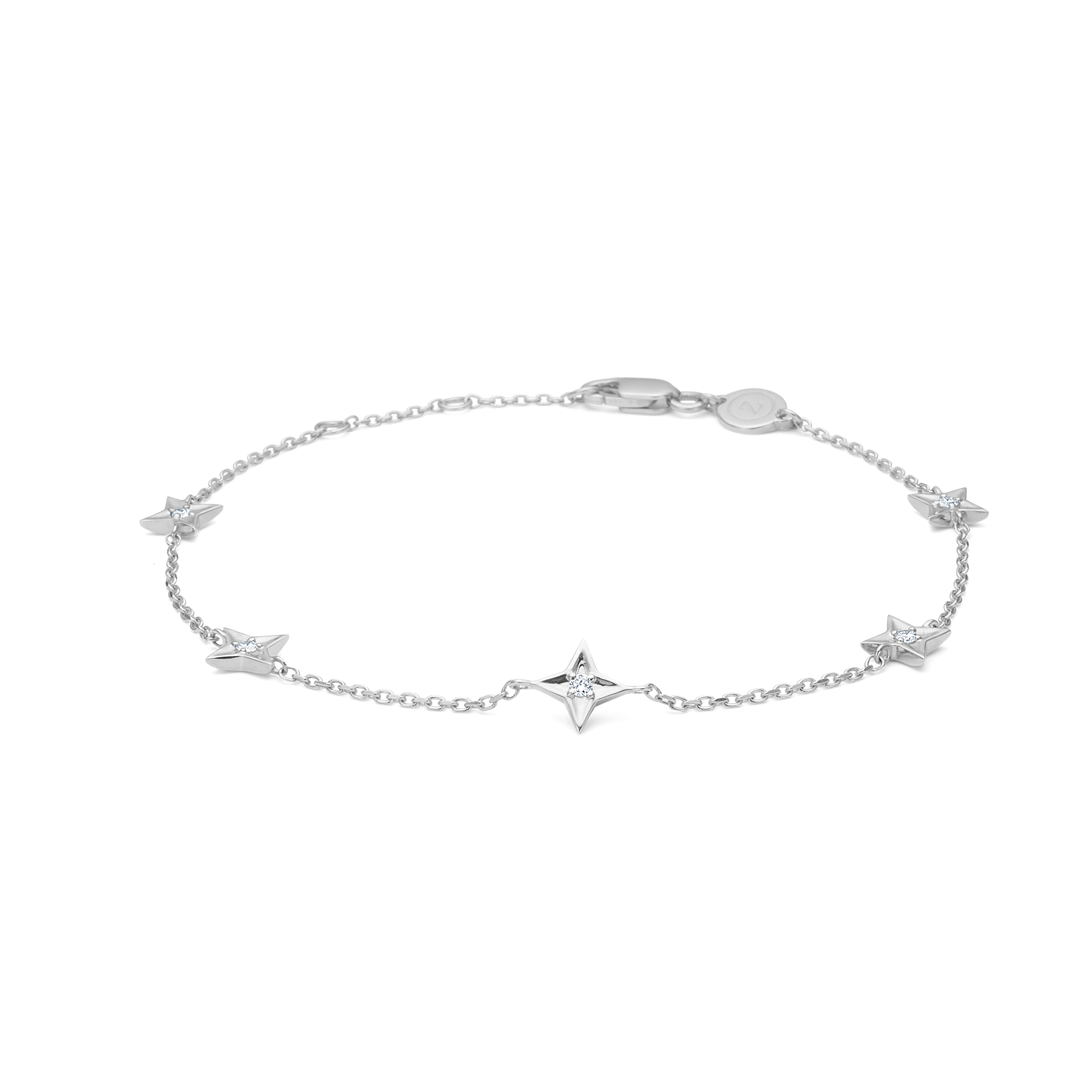 De böjda stjärnorna bildar en vacker kontrast till den fina ankarkedjan, som ger ett lätt och elegant uttryck. Armbandet mäter 16 cm och har en 2 cm förlängningskedja så att du kan anpassa passformen efter önskemål.