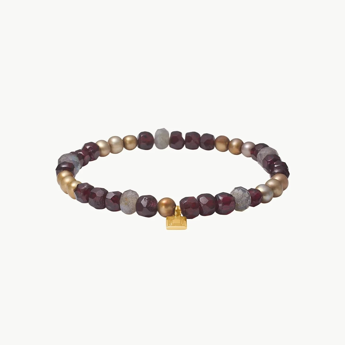 Carré Simone armbånd med Granat, Gylden Perle og Labradorit – Guldbelagt: