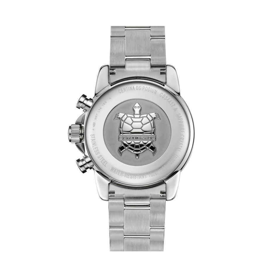 Certina DS Podium med stålkedja och snygg och stilren svart urtavla. Klockan har ett kronografurverk vilket ger klockan en snygg sportig design. Klockan har datumvisning och tydliga tim- och minutmarkeringar. En läcker vardagsklocka, som dessutom är så snygg att den även kan användas till speciella tillfällen.