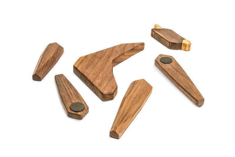 Figuren är gjord av nordamerikansk valnöt och ask, vilket ger vackra kontraster i träets naturliga färger och en varm finish. Den är CE-godkänd från 1 år och uppfyller därmed EU:s säkerhetskrav för leksaker.