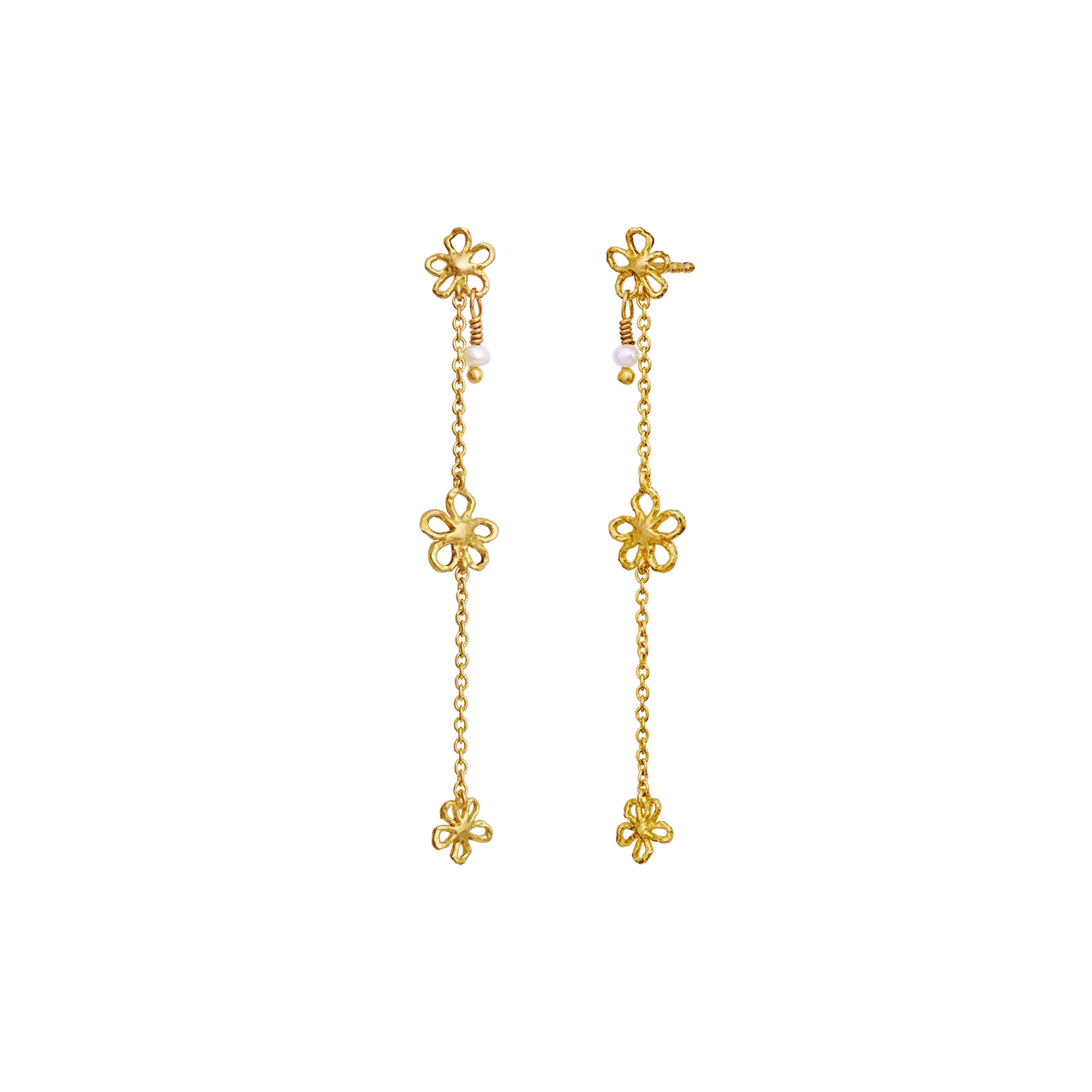 Øreringene er fremstillet i genanvendt sterlingsølv (925) forgyldt med 18 kt. guld og har et let og levende fald, der bevæger sig smukt, når du gør. Perfekte til både hverdag og særlige øjeblikke, hvor du ønsker et romantisk og personligt touch. En del af Maanesten SS26 kollektionen med fokus på nostalgi, natur og sommerstemning.