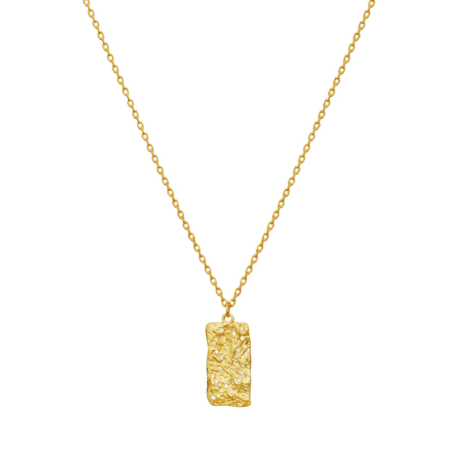 Maanestens Notabene guldpläterade halsband fångar magin i livets reflekterande ögonblick. Det vackra hänget, inspirerat av månens struktur, är beströdd med gnistrande vita zirkoner och återspeglar den speciella attraktion som hemliga berättelser har. Halsbandet är en graciös hyllning till livets vackra och dolda ögonblick, vilket ger en lyxig och tidlös touch till din stil.