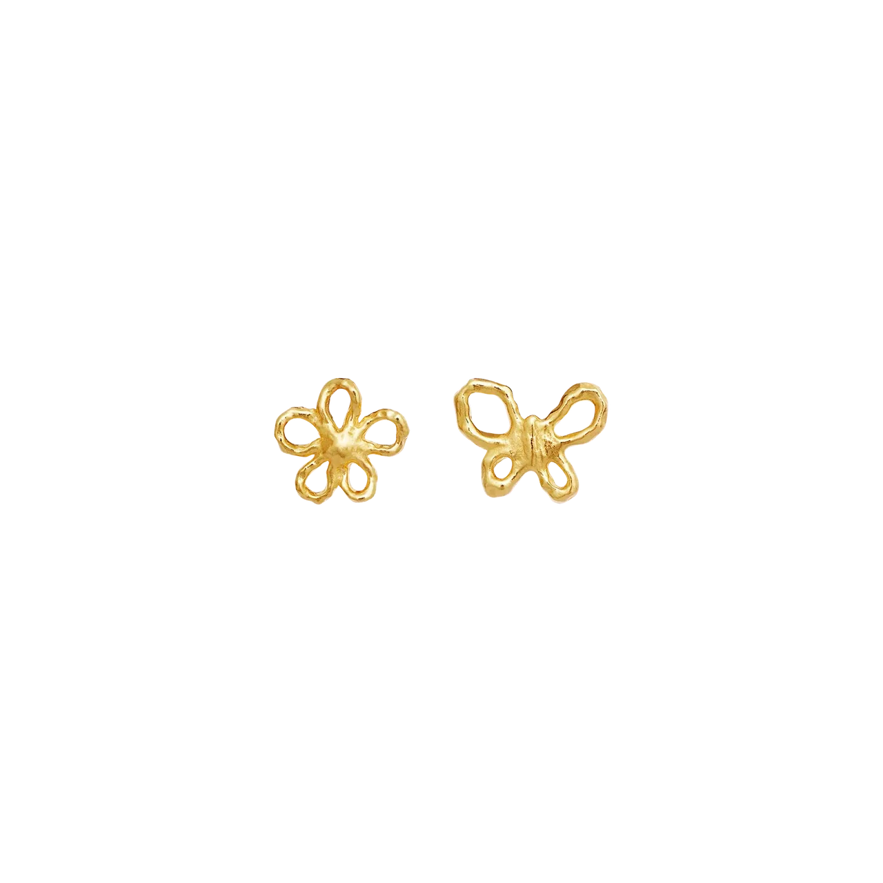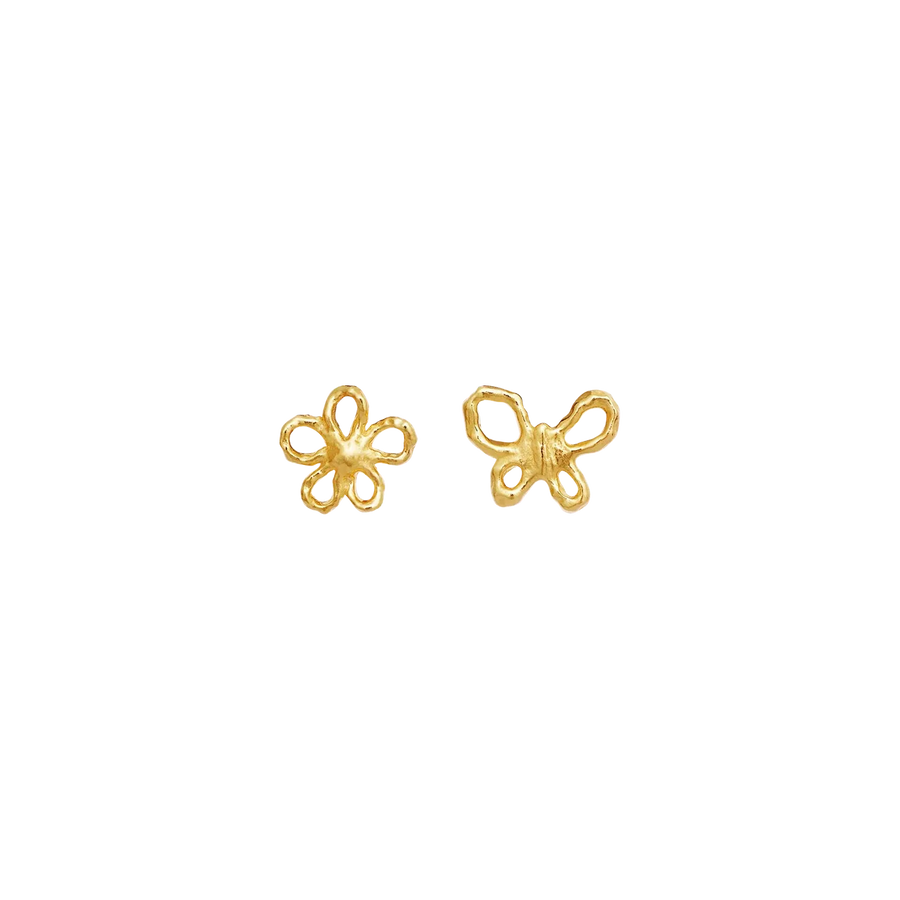 Maanesten Paula Forgyldte Ørestikker forener en lille sommerfugl og en fin blomst i et feminint og poetisk design. Symbolerne repræsenterer forvandling, lethed og naturens stille skønhed – en smuk påmindelse om, at de mindste detaljer ofte rummer den største betydning.
