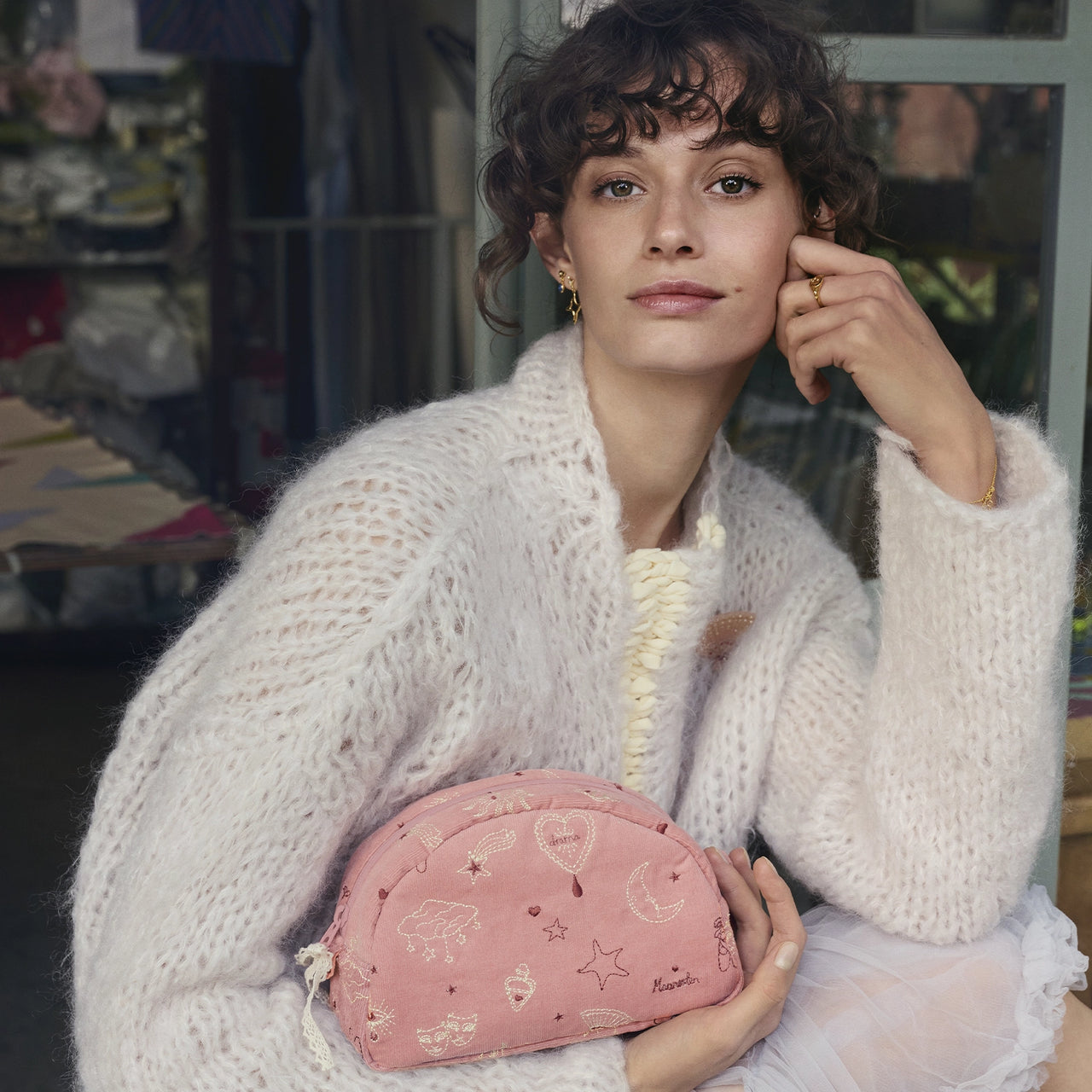 Upplev magin i din dagliga sminkrutin med Maanestens sminkväska i rosa teatermagi. Designad med ett förtrollande mönster av stjärnor, hjärtan, halvmånar och lockande fans, är denna eleganta sminkväska inte bara en praktisk förvaringslösning, utan också en vacker och dekorativ accessoar. Sammetsmaterialet i den ömtåliga rosa nyansen ger en touch av lyx, medan fodret av ekologisk bomull ser till att dina sminkprodukter förvaras säkert och stilfullt.