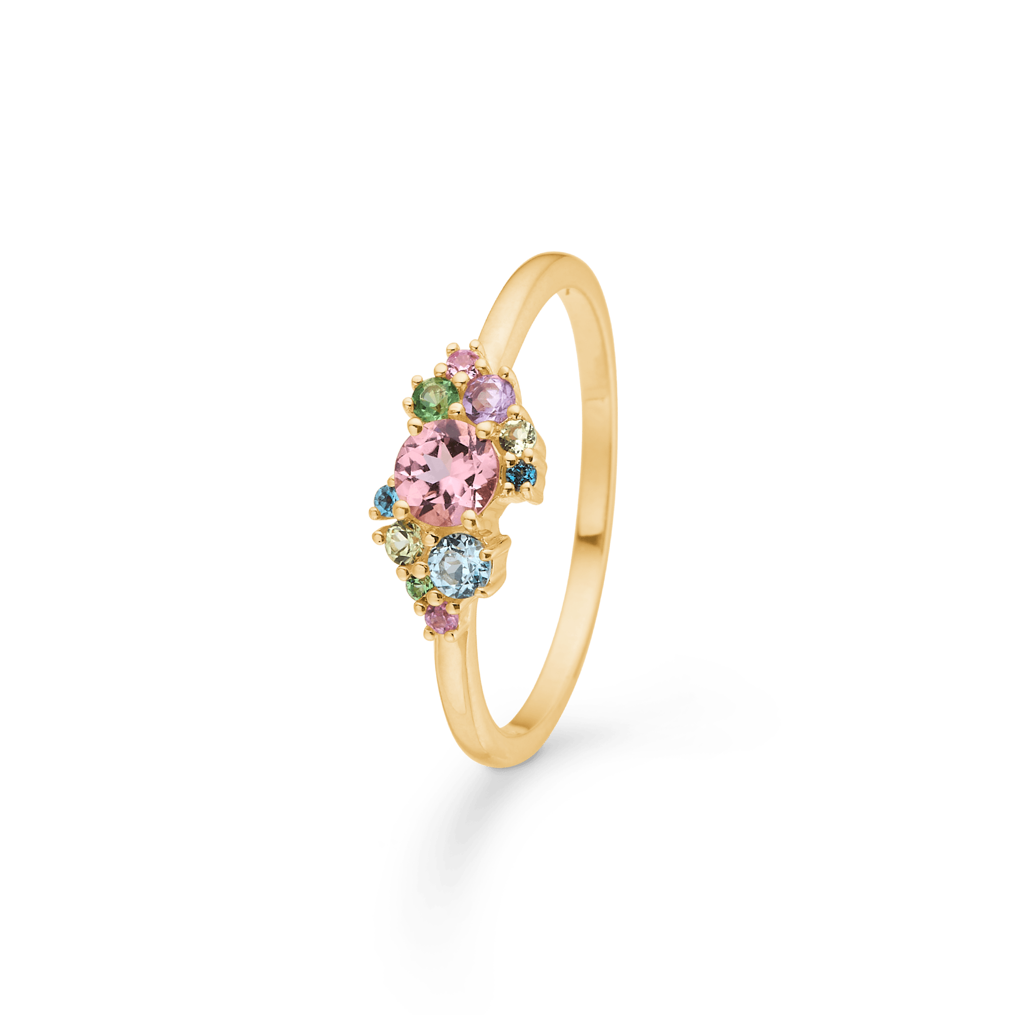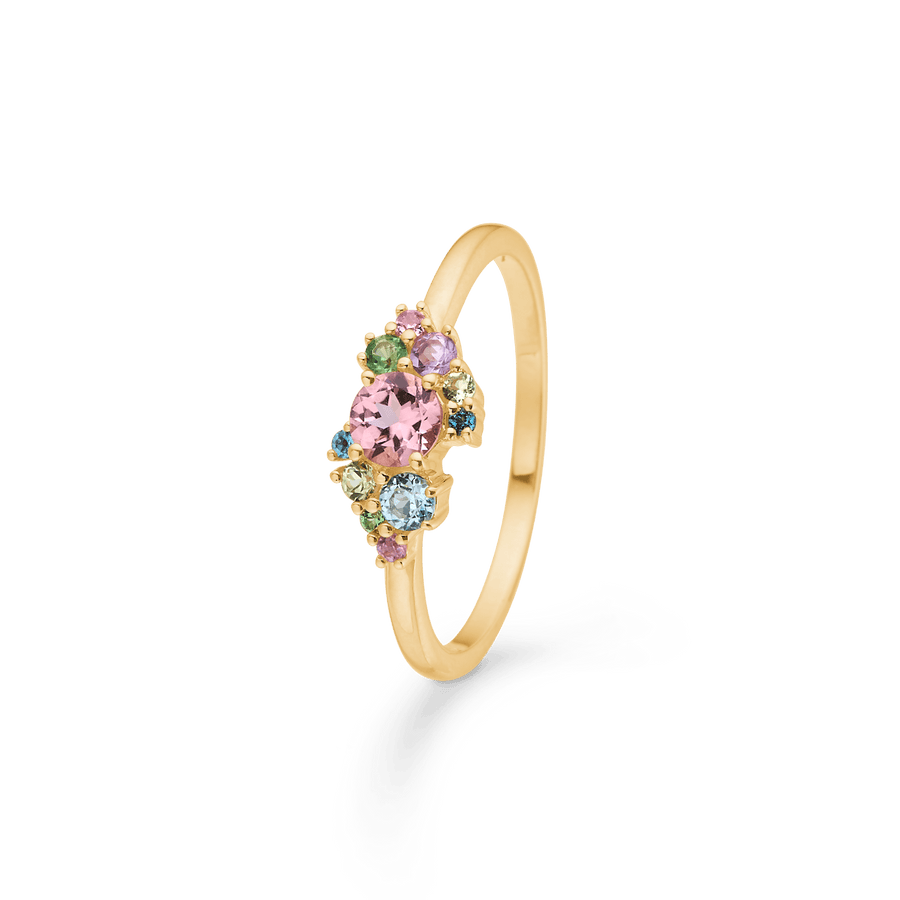 Den lilla prinsessringen från Mads Z Gold Label Collection är en vacker firande av kärlek och banden som binder oss ihop. Denna ring är gjord av 14 karatguld och prydd med en färgglad samling riktiga ädelstenar. Den perfekta gåvan för att markera speciella stunder som mors dag eller som en moderskapsgåva till den nyfödda modern. Smycken symboliserar det vackra i vardagens magi och de kärleksfulla bindningarna som kopplar oss ihop.