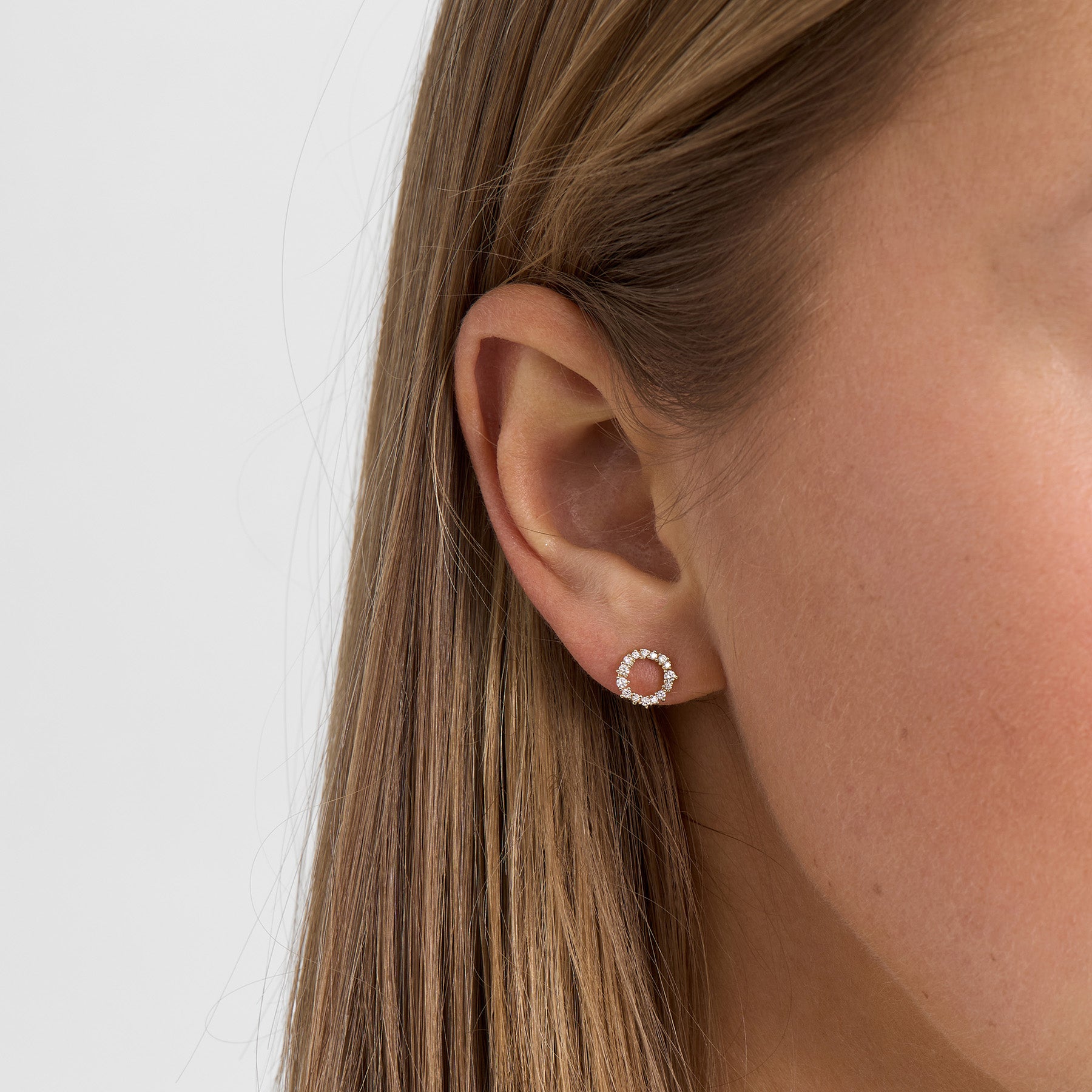 Det varma 14 kt guldet framhäver diamantens klara briljans och skapar en fin balans mellan exklusivitet och enkelhet. Den öppna cirkelformen symboliserar helhet och evighet och gör örhängena både feminina och klassiska.