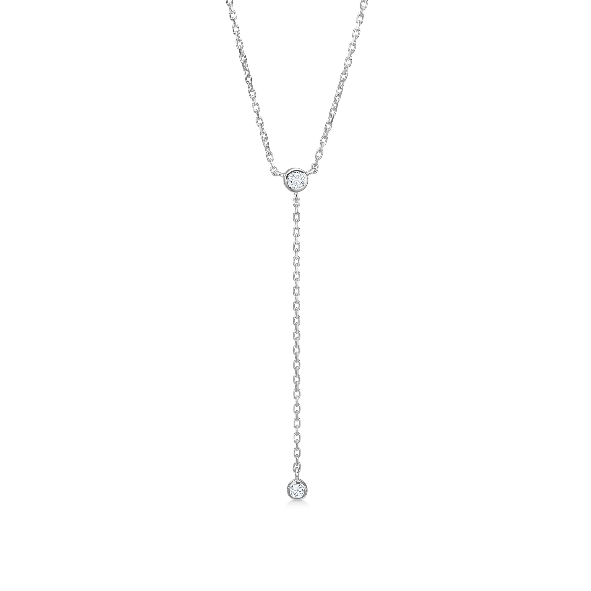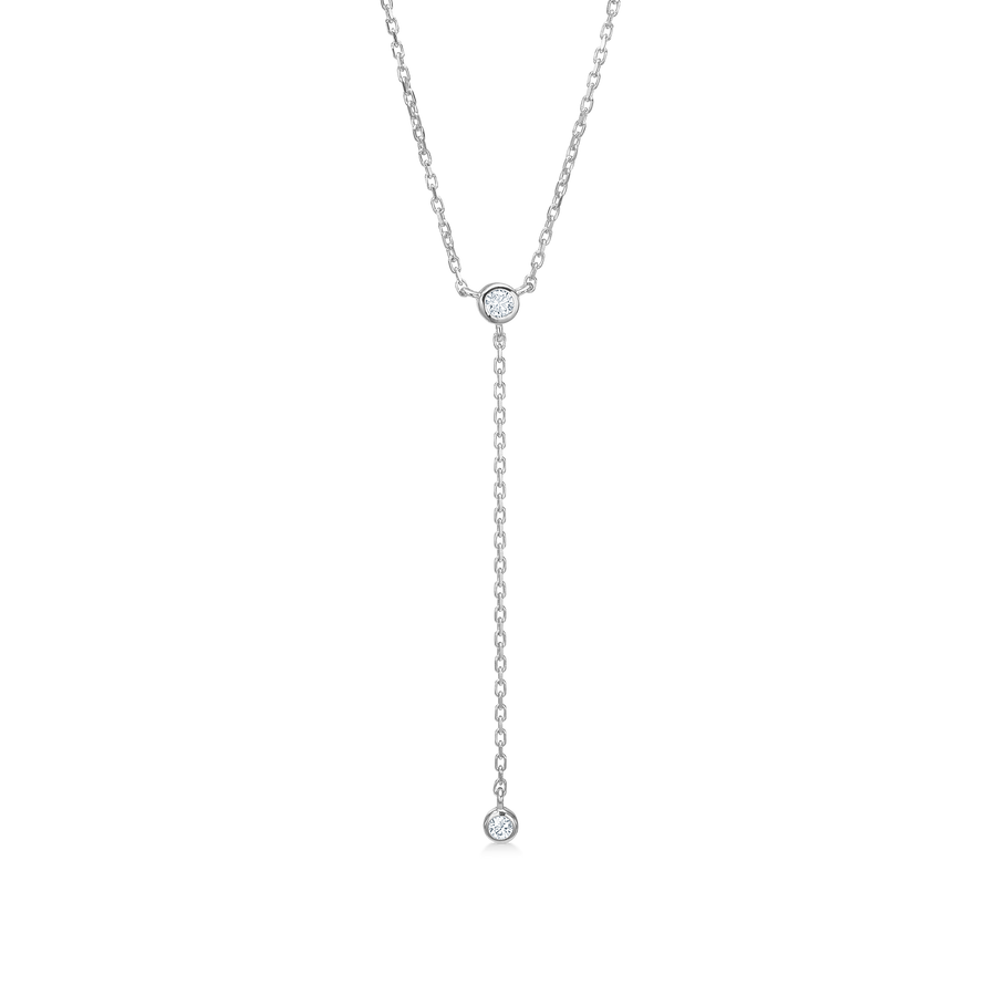 Vackert och stilrent halsband i polerat sterlingsilver, designat med ett elegant Y-fall och fina vita topaser. Ett feminint smycke som ger en lätt och sofistikerad look. Kedjan mäter 40 cm och kan justeras med 5 cm för en flexibel passform.