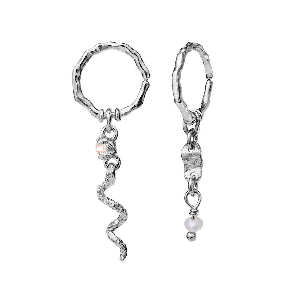 Dessa örhängen från Maanesten är en perfekt kombination av klassisk design och äventyrlig charm. Det intrikata och nyckfulla uttrycket ger dig inspiration att skapa en unik stil. Örhängena är gjorda av 925 Sterling silver, vilket ger dem en vacker glans.