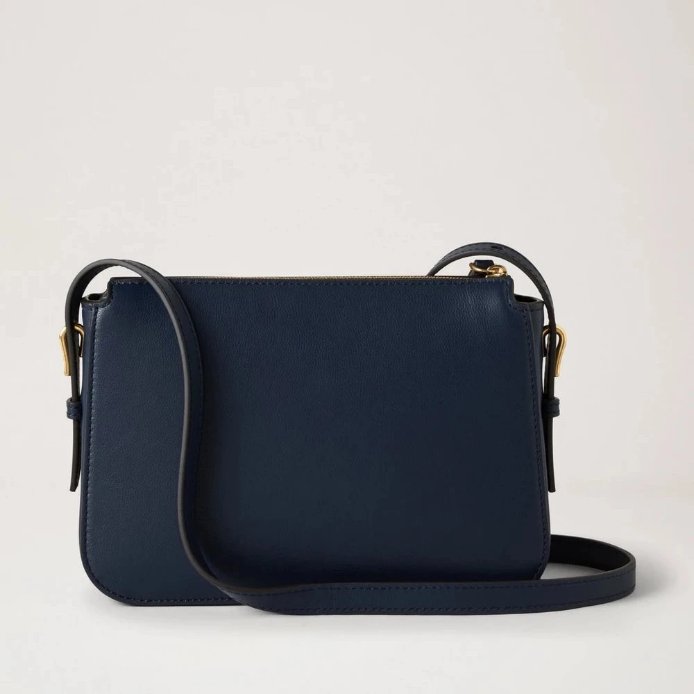 Väskan är tillverkad av exklusivt Micro Classic Grain-läder i färgen Night Sky (mörkblå) vilket ger en ljus, elegant och lyxig look. Den har en praktisk dragkedja, en avtagbar och justerbar axelrem, samt fina mjuka gulddetaljer som framhäver den tidlösa designen. Det markerade Mulberrylogotyp på framsidan ger en diskret touch av exklusivitet.