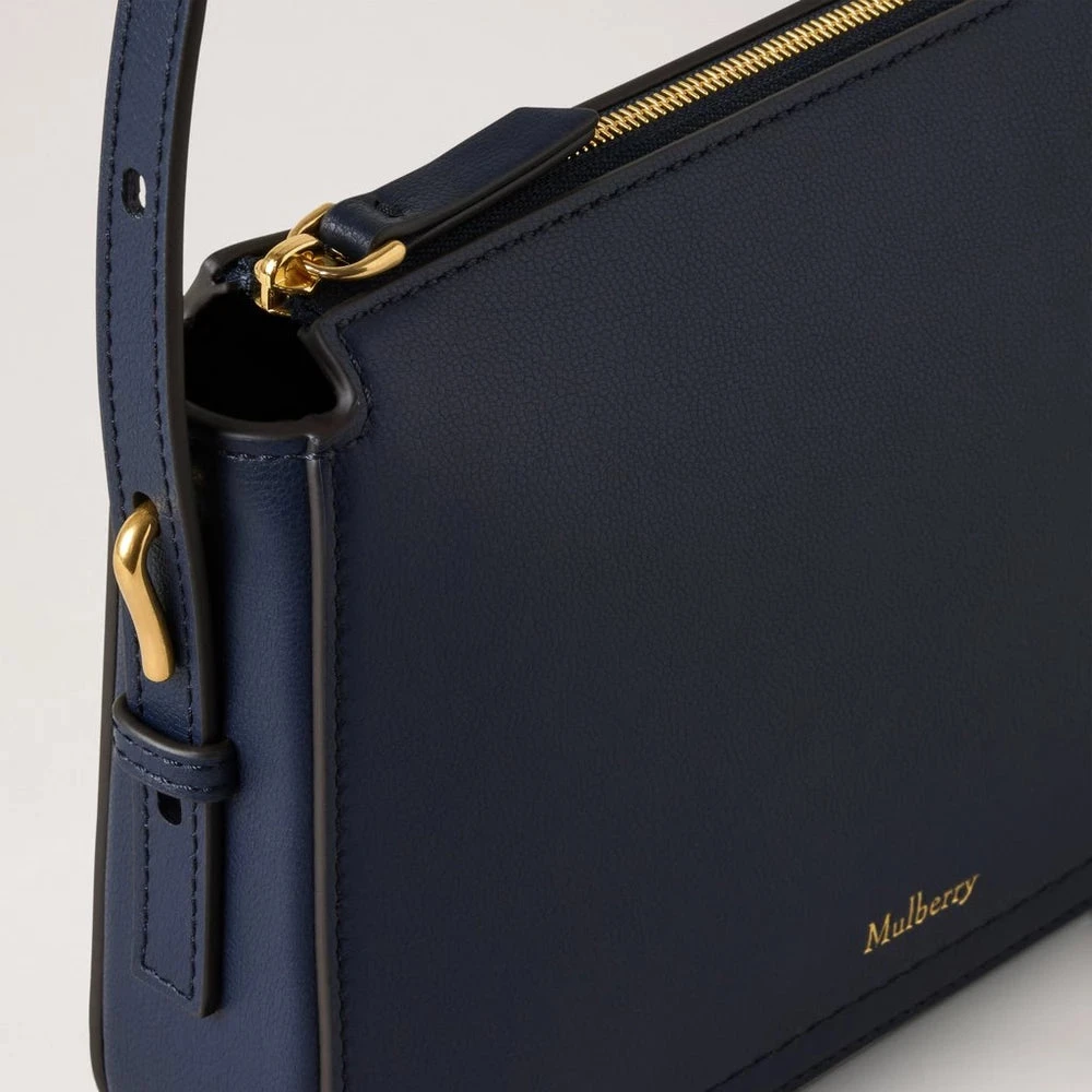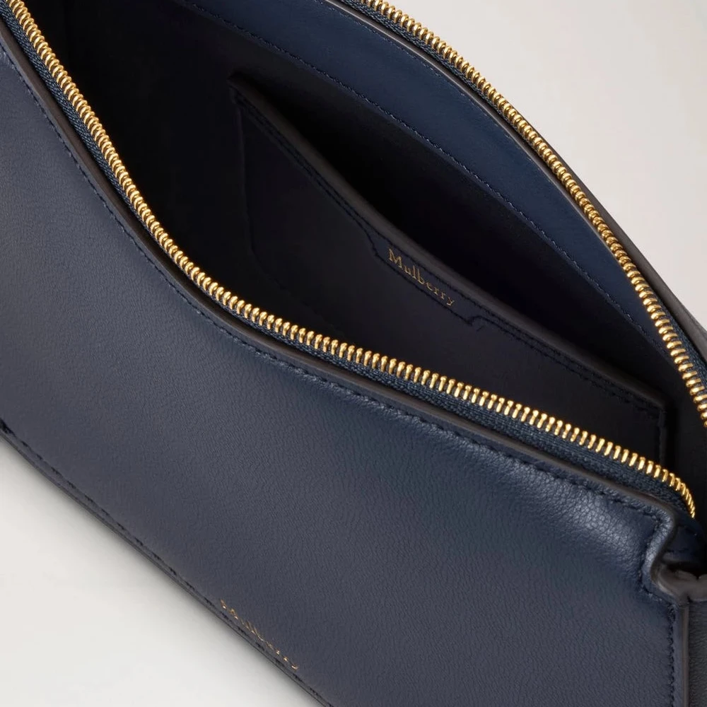 Mulberry Clovelly Pouch – Night Sky Micro Classic Grain / Mörkblått läderpåse: