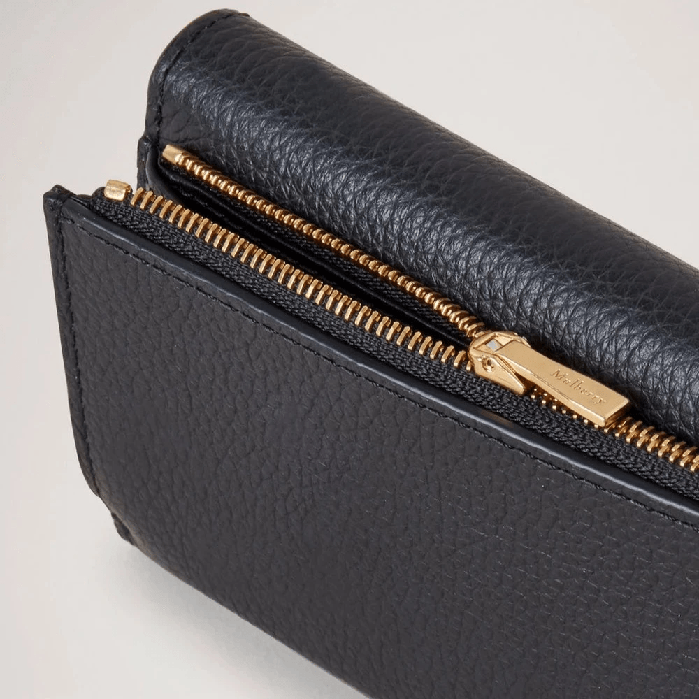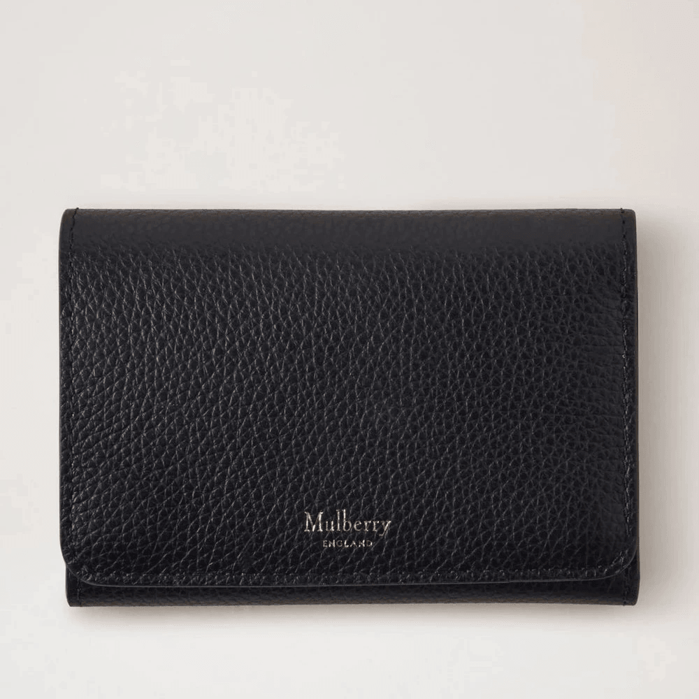 Mulberry Continental Trifold är en tidlös handväska som kombinerar klassisk elegans med praktisk funktionalitet. Denna trifold handväska är utformad för att lagra dina väsentligheter på ett snyggt sätt. Med sex kreditkortsficka, en blixtlås med dragkedja, två slipfickor och en anteckningsficka, ger denna plånbok dig gott om utrymme för både kort och anteckningar samtidigt som du behåller en sofistikerad och kompakt form.
