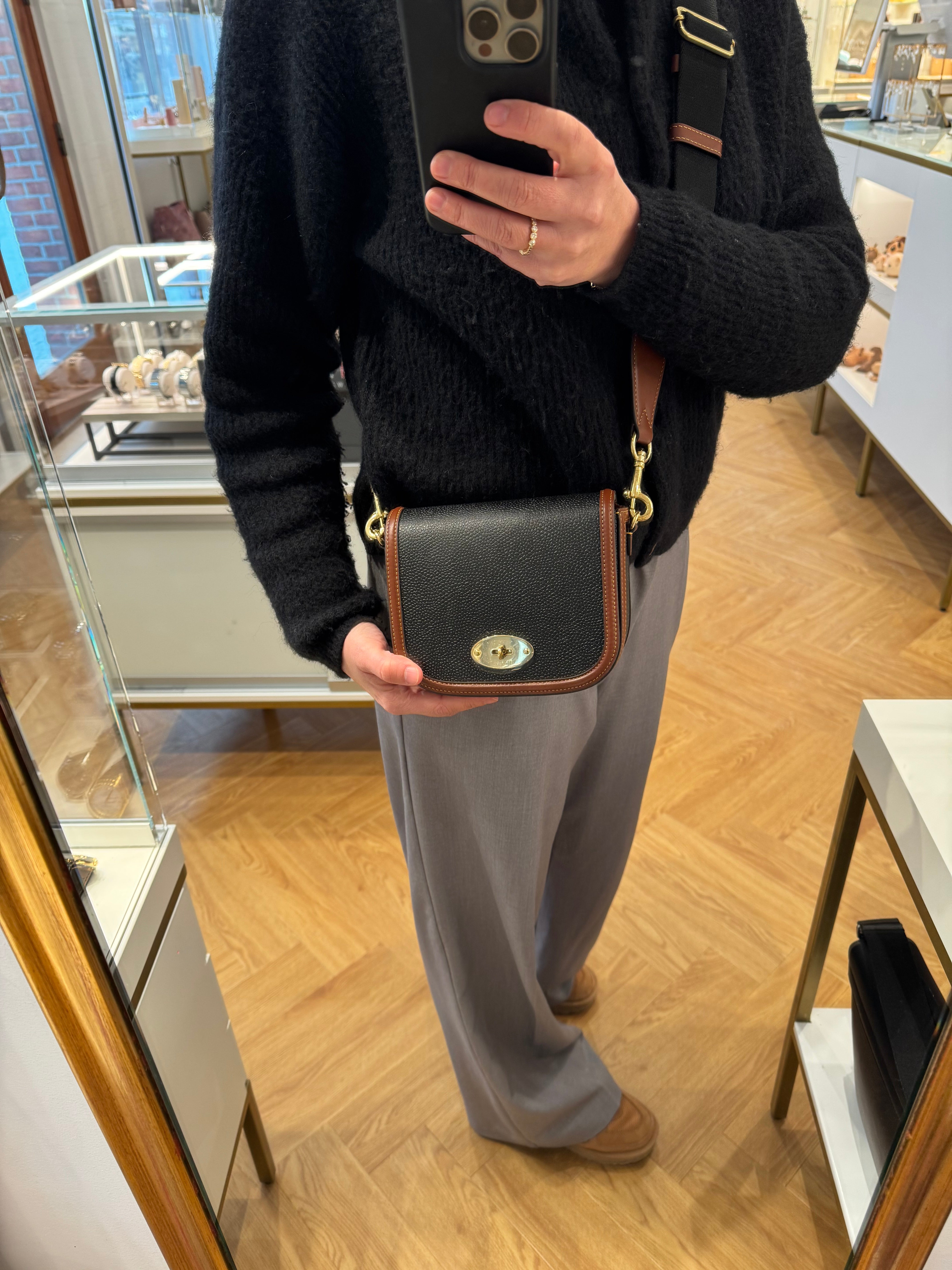 Mulberry Liten Darley Satchel – Black & Cognac Bio-Based Scotchgrain: