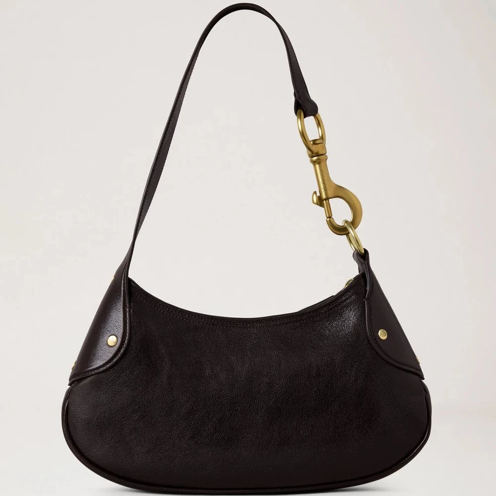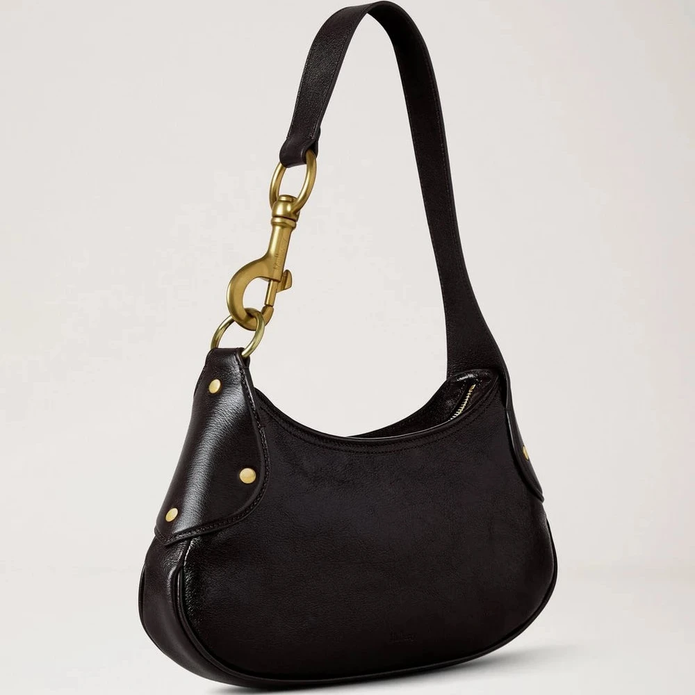 Mulberry Liten Hackney axelväska – Ebony Shiny Buffalo / Mörkbrun axelväska:
