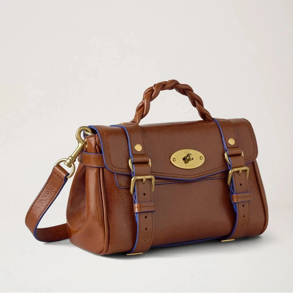 Mulberry Mini Alexa – Oak & Pigment Blue / Smooth Glossy Leather: