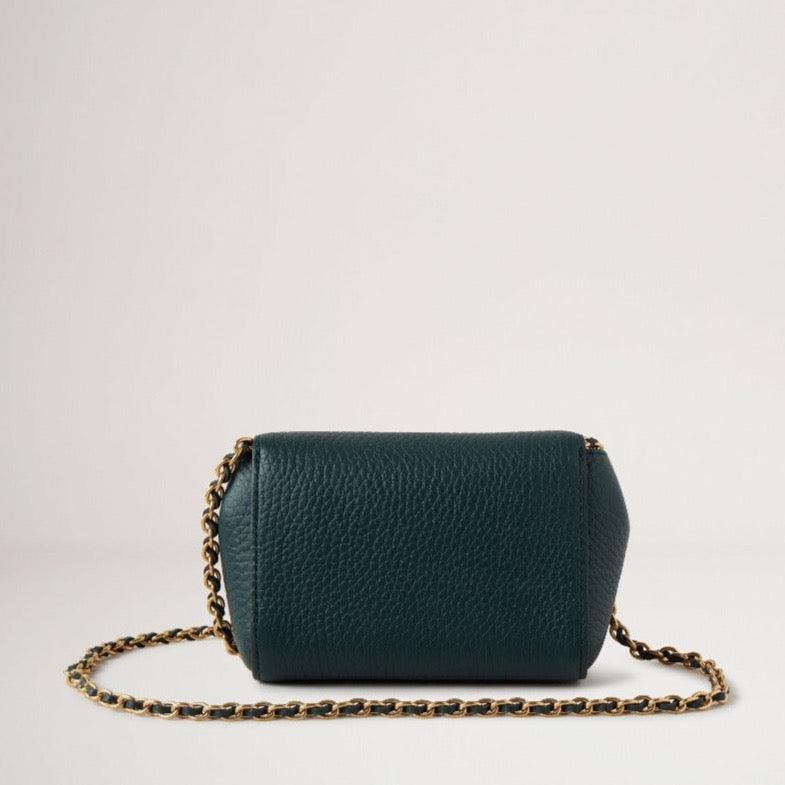Den vackra Mini Lily väska av Mulberry i färgen grön är äntligen tillbaka. Den har en helt klassisk och feminin look med det ikoniska Postman's-låset i guldhårdvara. Den sammanflätade axelremmen i läder och kedja, ger en feminin och exklusiv look och den fantastiska och extraordinära läderkvaliteten gör att den bara blir bättre med åren.
