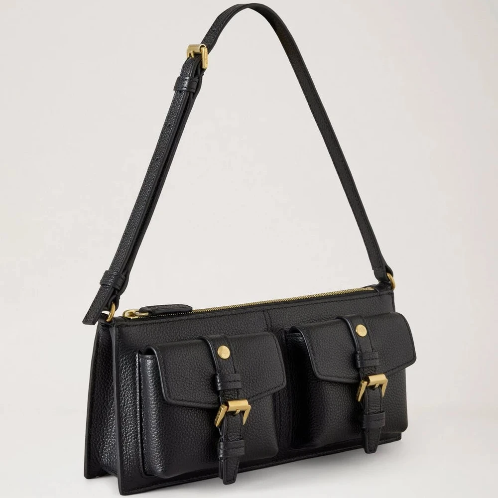 Mulberry Mini Roxanne Shoulder Bag är en modern och mångsidig version av den ikoniska Roxanne från 2004. Väskan behåller de klassiska detaljerna från originalet – inklusive de karakteristiska spännena och Mulberry's Tree nitar – men är uppdaterad med ett mer raffinerat och modernt uttryck.