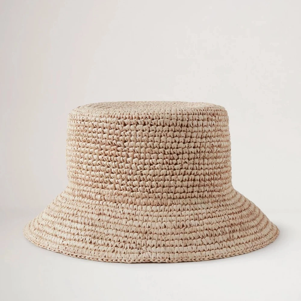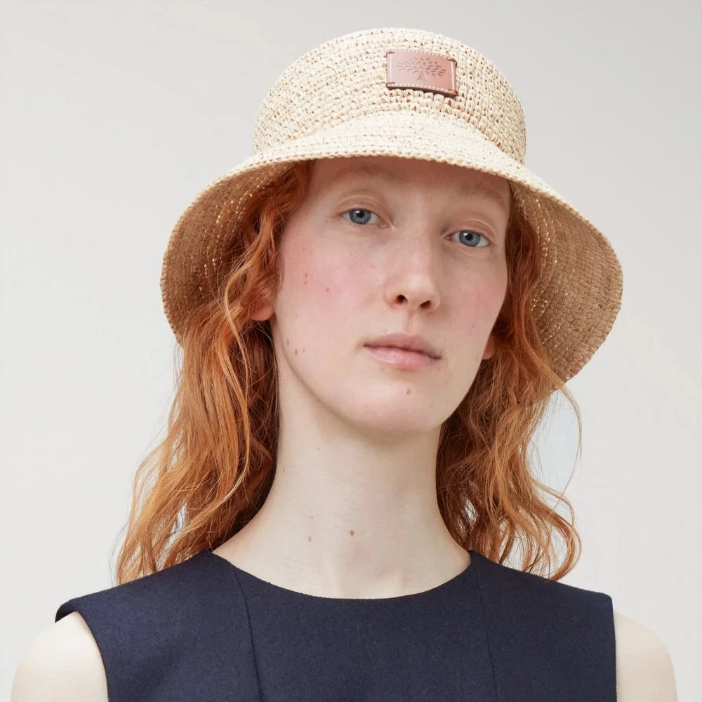 Mulberry Bucket Hat – Beige Raffia / Mulberry Sommarhatt: